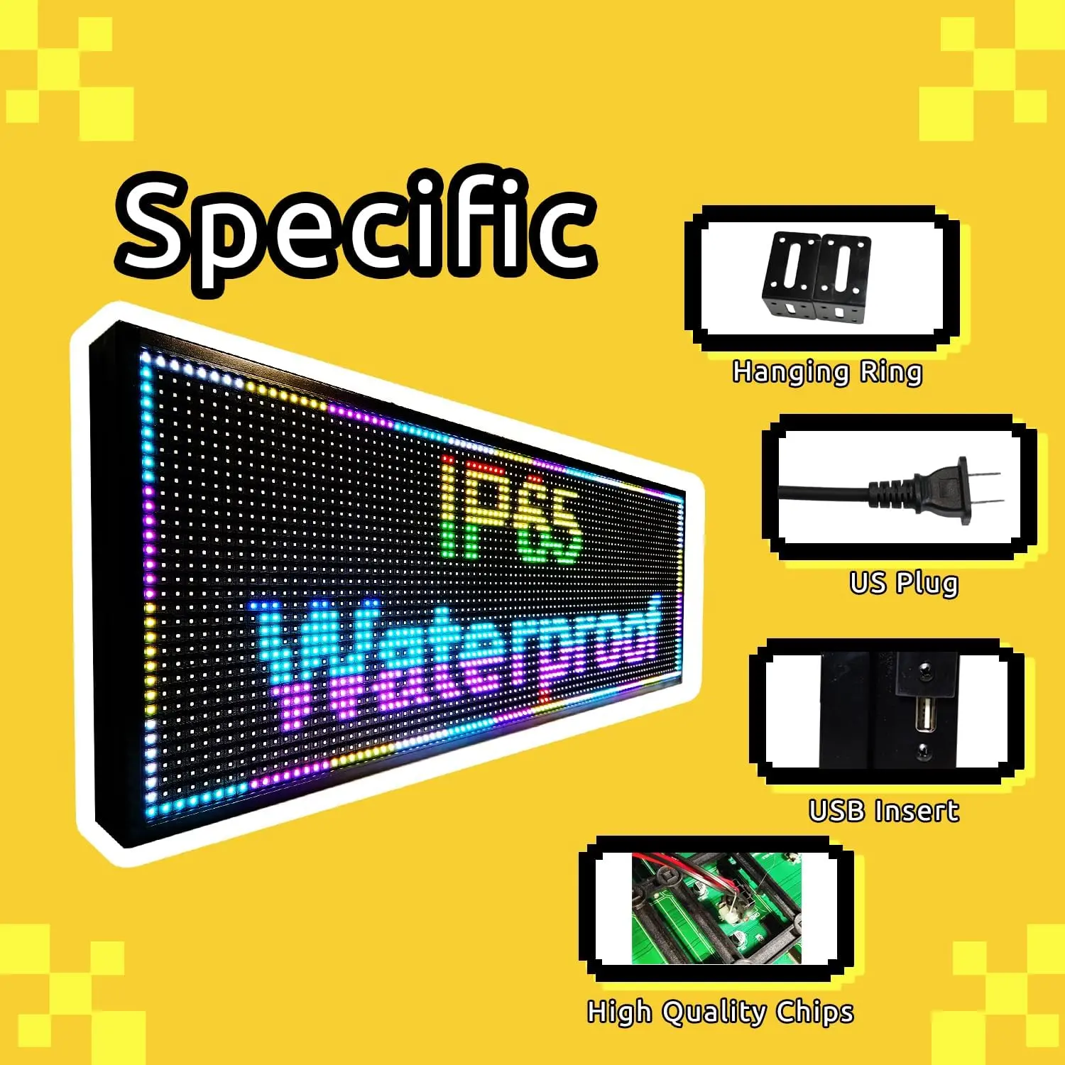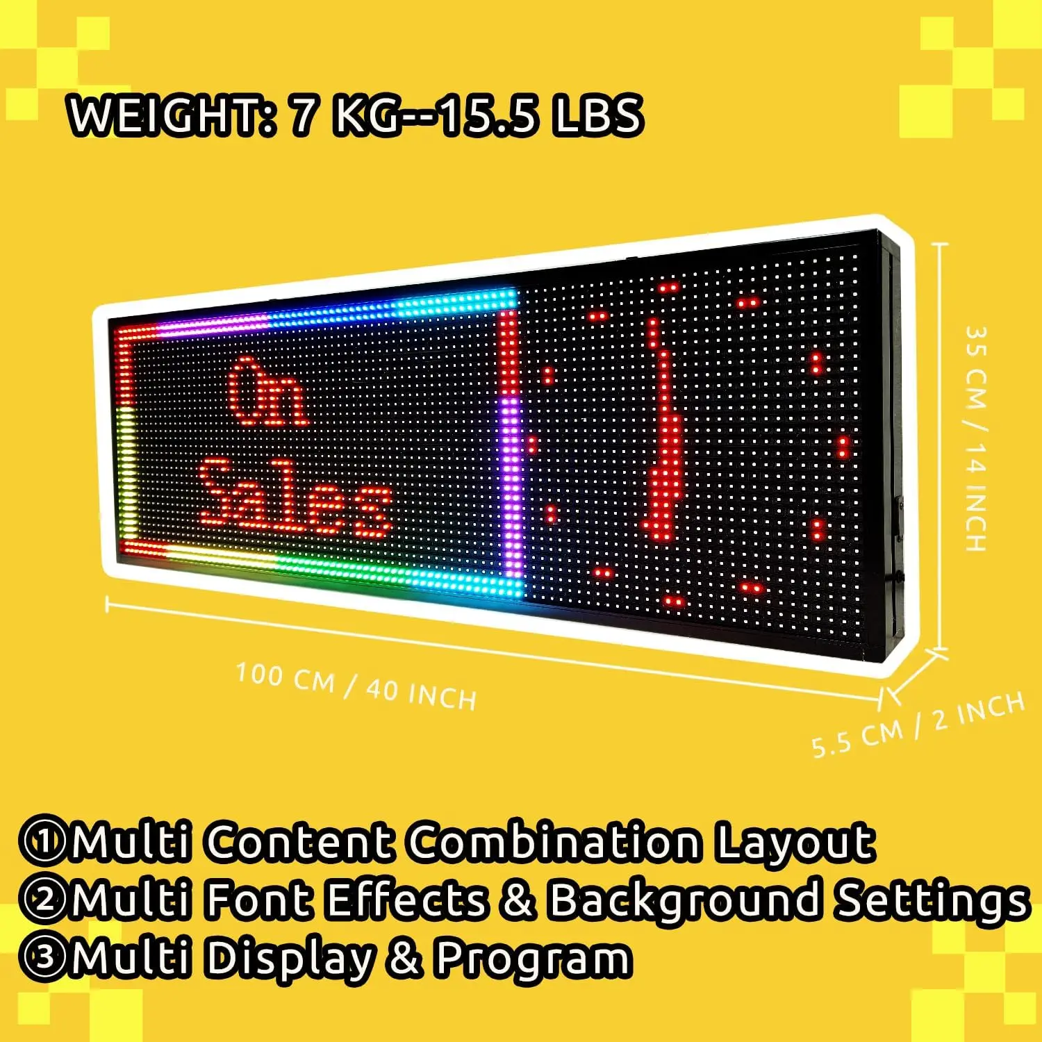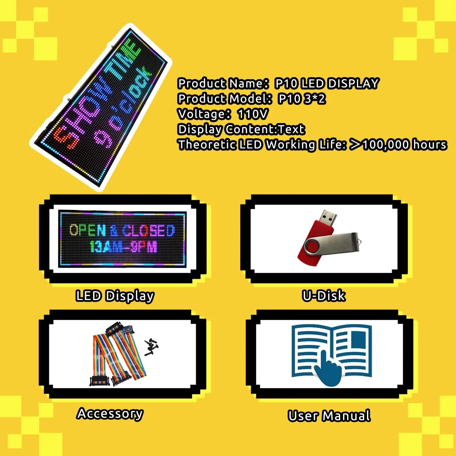 ·Innovative Programming Features--Diverse text and image backgrounds, P10 LED Display supports multi-line display, vivid and attractive color fonts. 28 playback modes, over 100 animation effects, from scrolling to static, creating vibrant and colorful advertising content. Our programmable scrolling LED Signs supports multiple programming methods, including computer, mobile phone WIFI remote, and U-disk storage. (PC Supports: Win8/WinXP/Win7/Win10, NOT compatible with Mac or MacBook)
