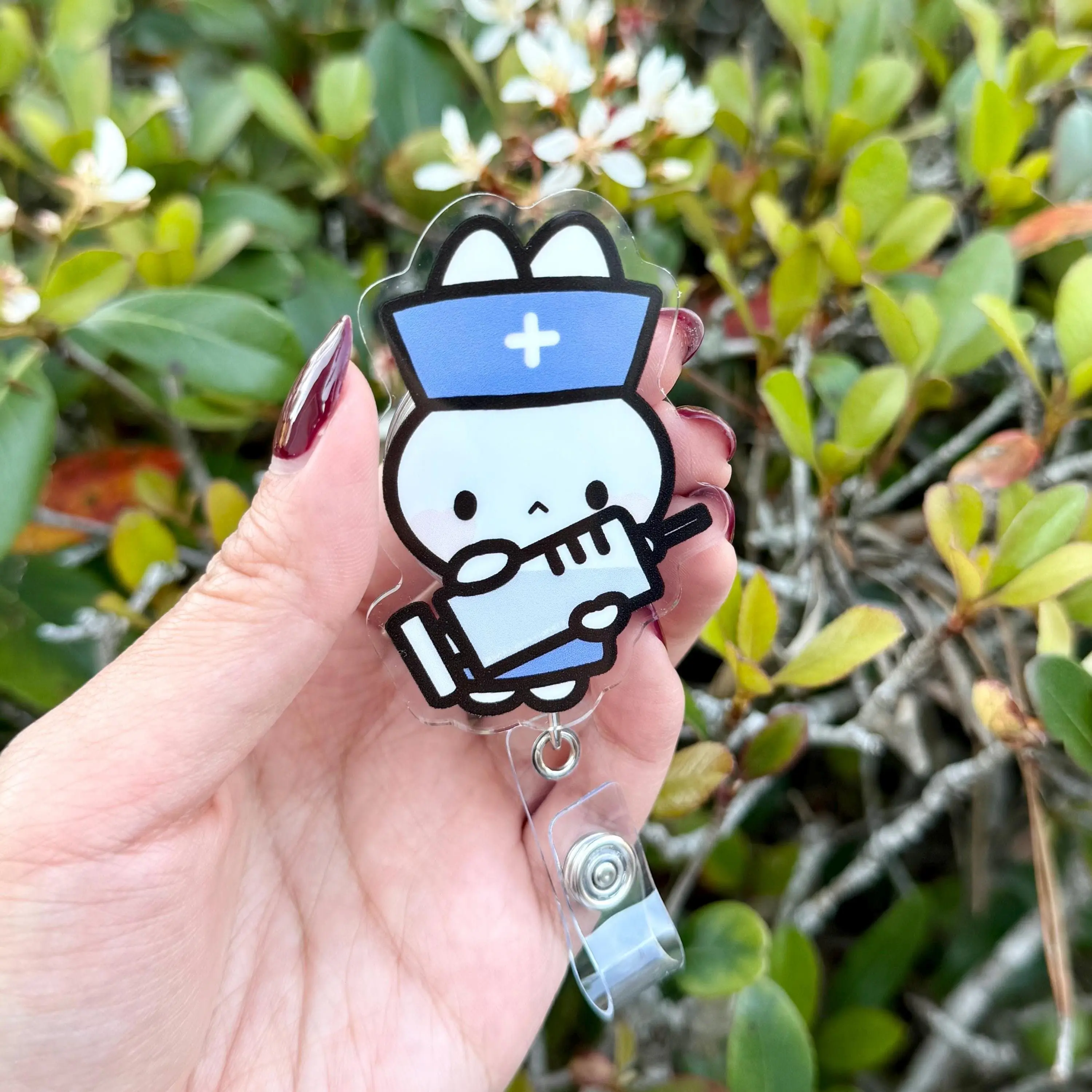 White Rabbit Bunny Medical Nurse Badge Reel, ID Holder, Kawaii Retractable, Accessory