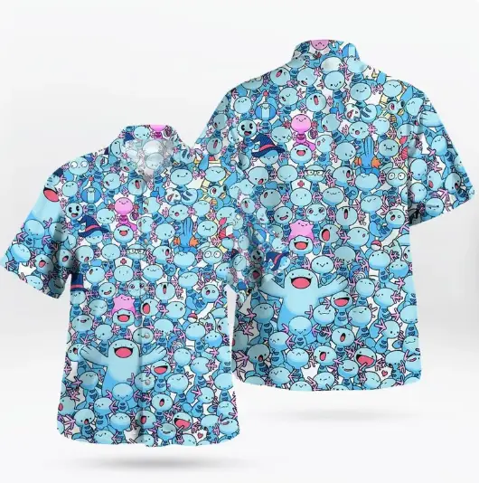 5. Anime MudkipBlue Hawaiian Shirt, Tropical Anime Aloha Shirt, Cute Kawaii Sleepy Cartoon Shirt, Unisex Summer Vacation Shirt, Streetwear Outfit | Cool Summer Anime Vibes for Men & Fans