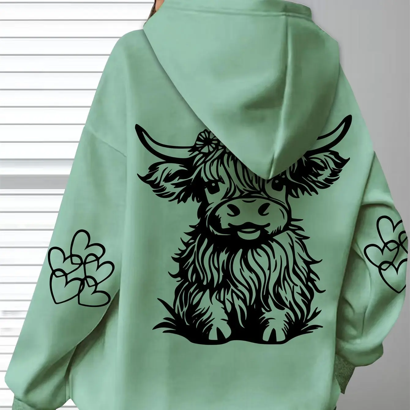 5. Women's Oversized Cozy Hoodie with Highland Cow Print & Paw Heart Design - Soft Long Sleeve Pullover, Brown Polyester Casual Wear for Everyday Comfort