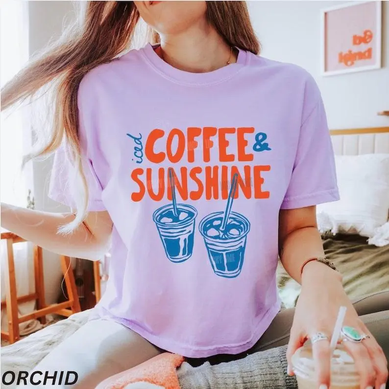 2026 Iced Coffee and Sunshine Crop Top - Vintage Summer Coffee Graphic Tee | Retro Beachy Shirt