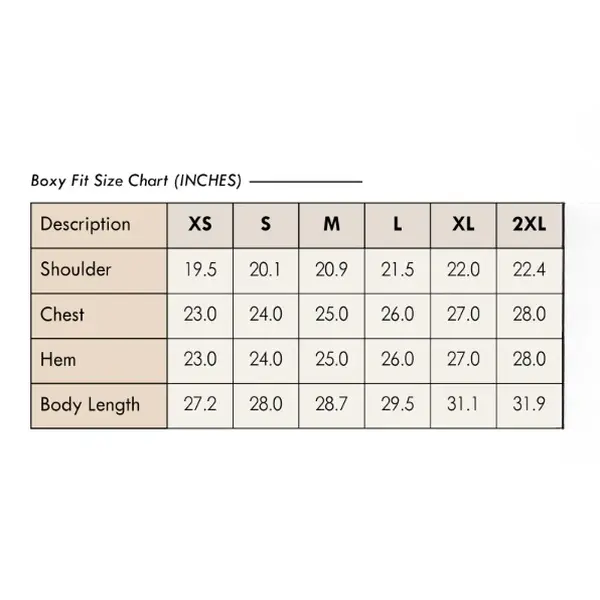 Boxy Fit: Relaxed silhouette with a slightly cropped (middie) length