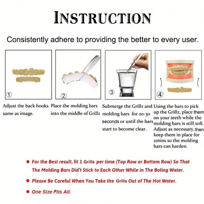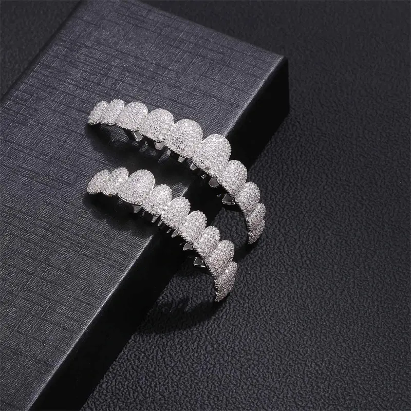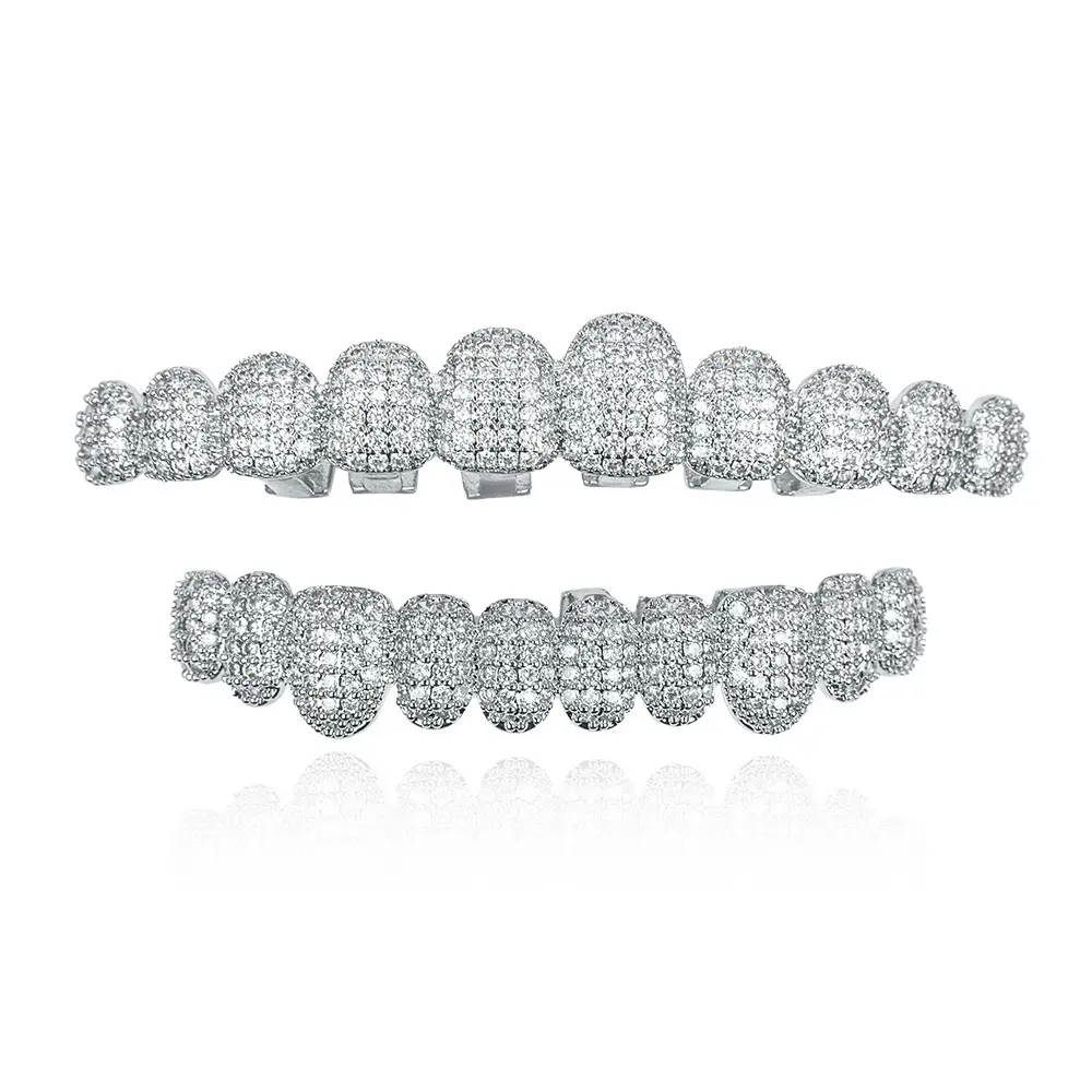 Iced Out Shiny Grillz Pack, Gold Finish Hip Hop Dental Decor, Luxury Zircon Embellished Teeth Covers, Stylish Street Rap Costume Piece, Great Gift for Hip-Hop Artists & Party Performers