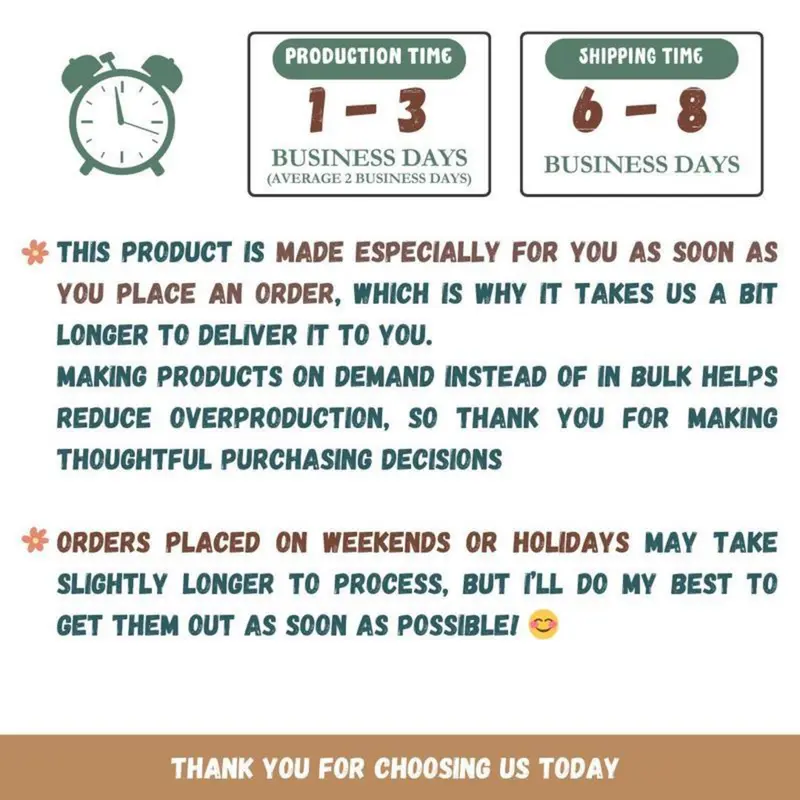 💞 Thank you for choosing our products today! If you need information about processing time, shipping, multiple orders, etc., please contact us.
