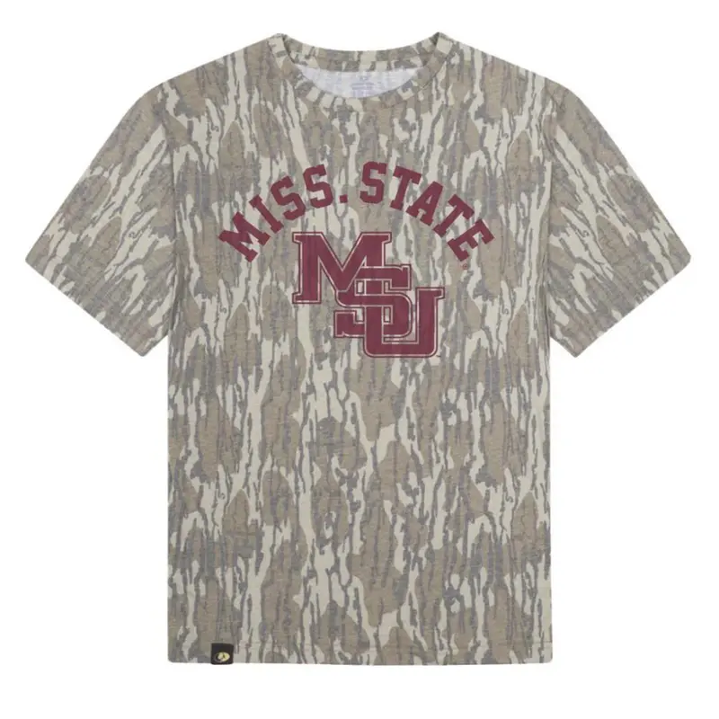 Mossy Oak Mississippi State Vault Bottomland T-Shirt, College Fan Graphic Tee, Hunting Fishing Apparel, Outdoor Streetwear Style