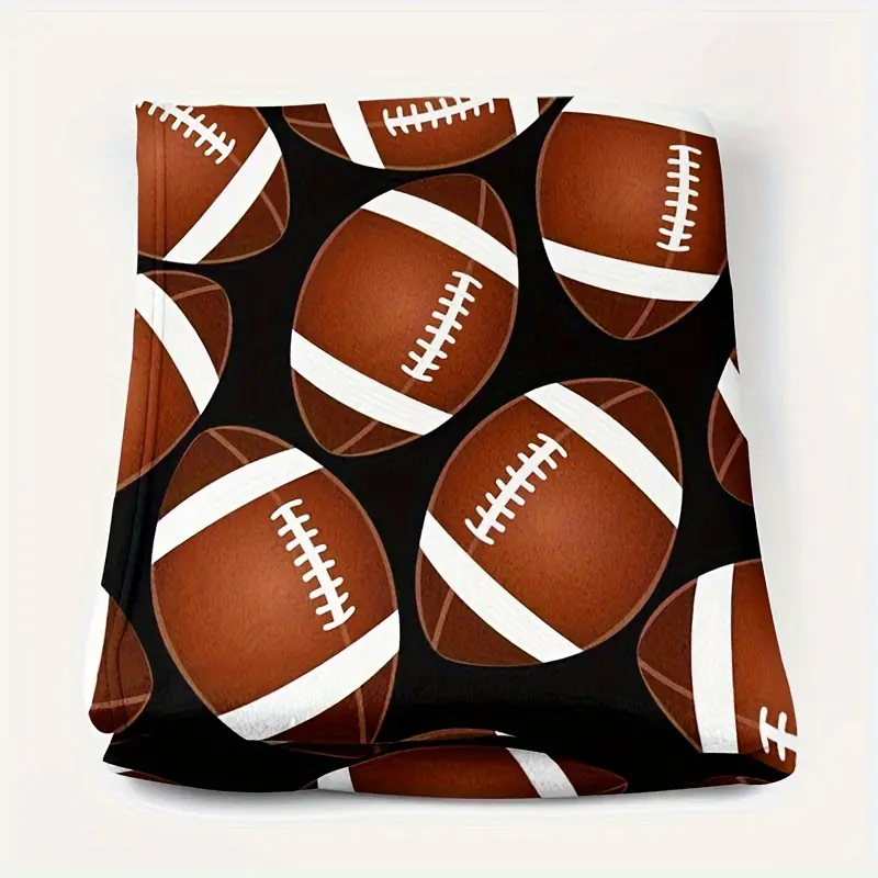 1PC Football Print Flannel Flannel Throw Blanket - Soft, Cozy, Machine Washable All-Season Polyester Bedding for Teens, Ideal Sports Theme Gift-280GSM