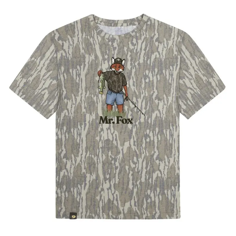 Mossy Oak Mr Fox Bass Bottomland T-Shirt, Fishing Graphic Tee, Lake River Outfit, Outdoor Adventure Apparel Style