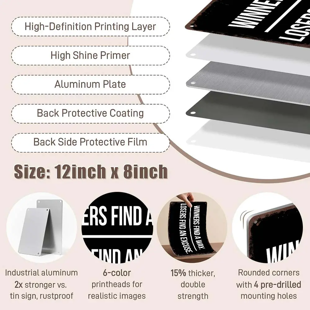 Winners Find A Way. Losers Find An Excuse. 12x8 Inch Motivational Wall Art – Gym, Office, Garage Decor – Bold Indoor/Outdoor Poster