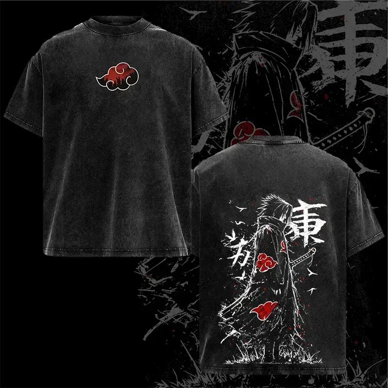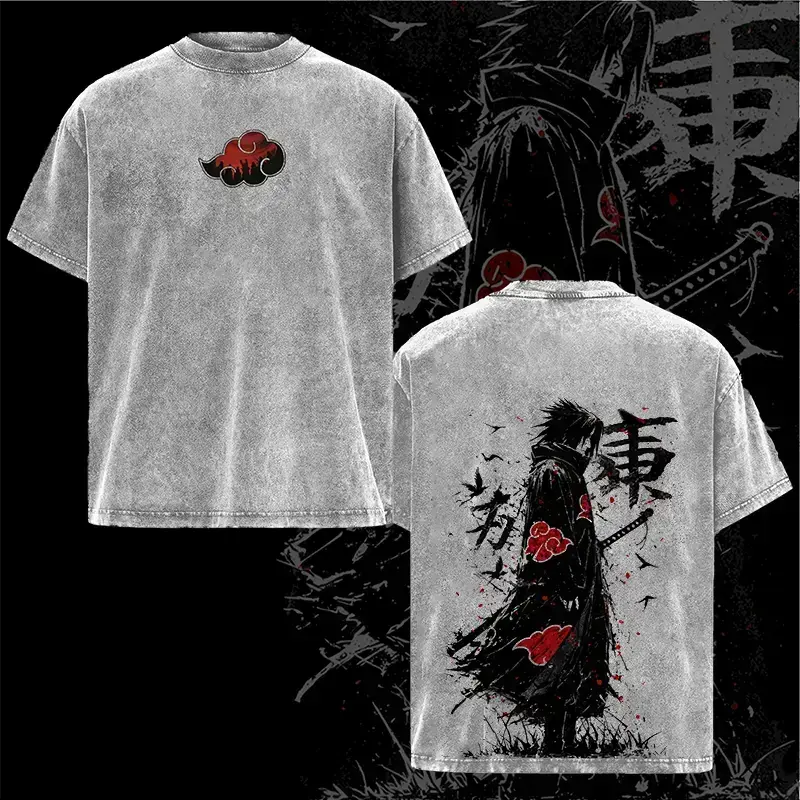 Retro Heavy Limited Sasuke - Naruto Anime Double Printed Vintage Washed Tee Unisex Oversize Anime Manga Washed Heavyweight Cotton T-shirt, Gift for Anime Fan, Anime Lover Menswear Top Tshirt Streetwear Oversized Crewneck Tropical