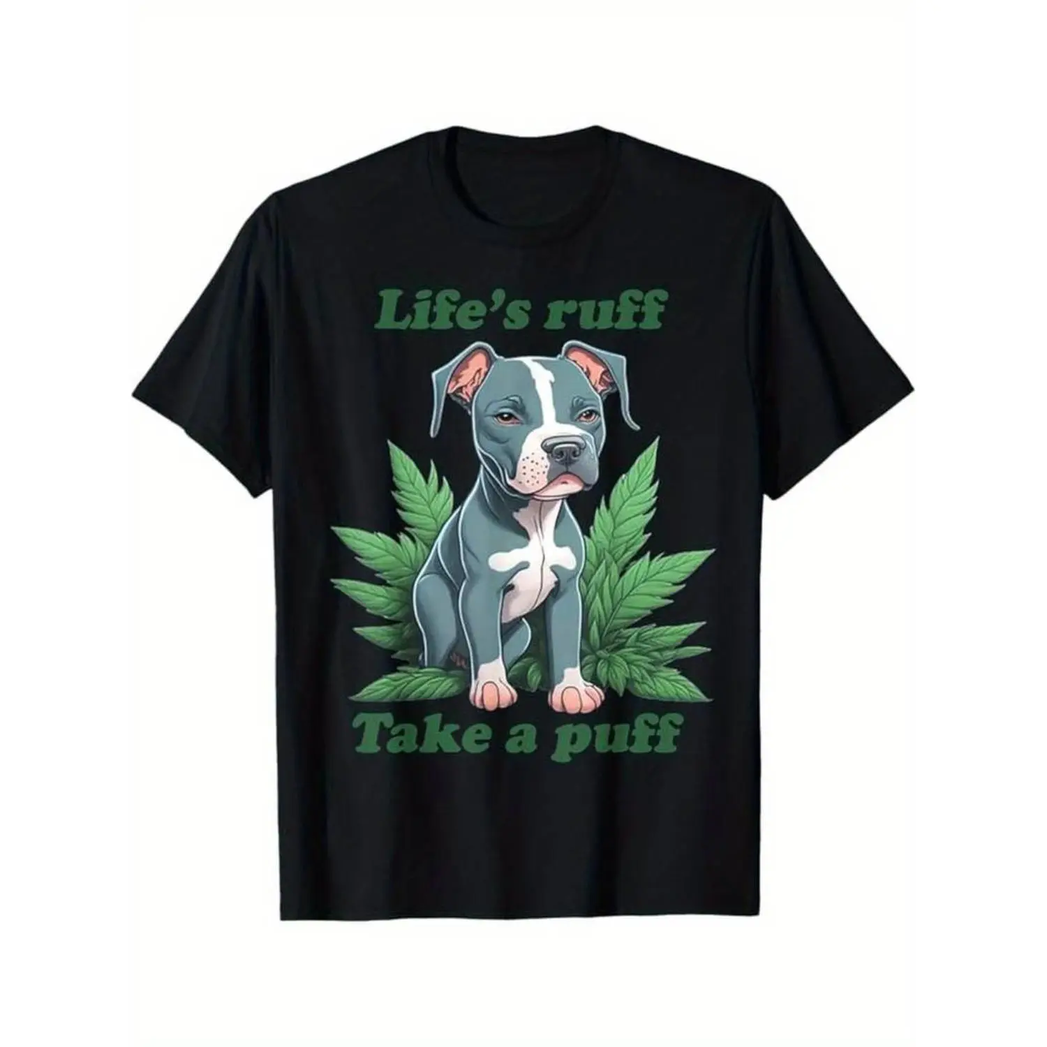 Soft & Comfy T shirt Life's Ruff Take A Puff Pitbull Weed T-Shirt, Black, 100% Cotton