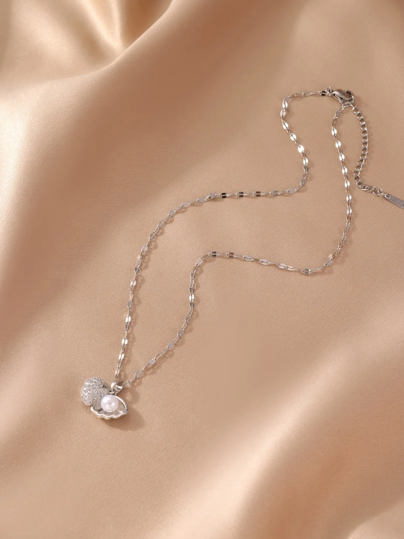 Elegant Ocean Style CZ Starfish Scallop Mermaid Tail Silver Necklace Lightweight All Season For Women Daily Wear
