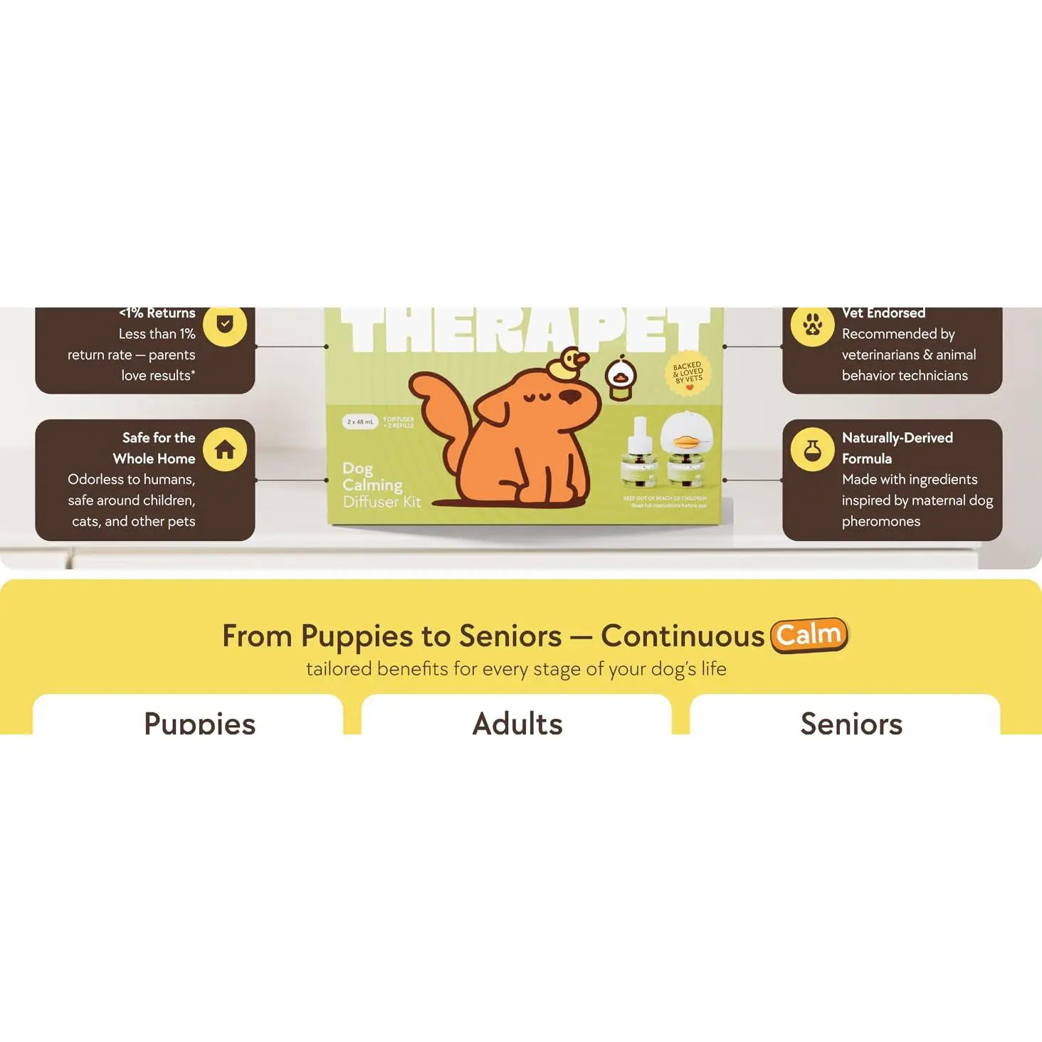 TherapetMD 60-Day Dog Calming Diffuser - for Stress, Destructive Behavior, Pee Accidents, Separation Anxiety, Barking, Aggression & Chewing - 60-Day Refill Included - Packaging May Vary