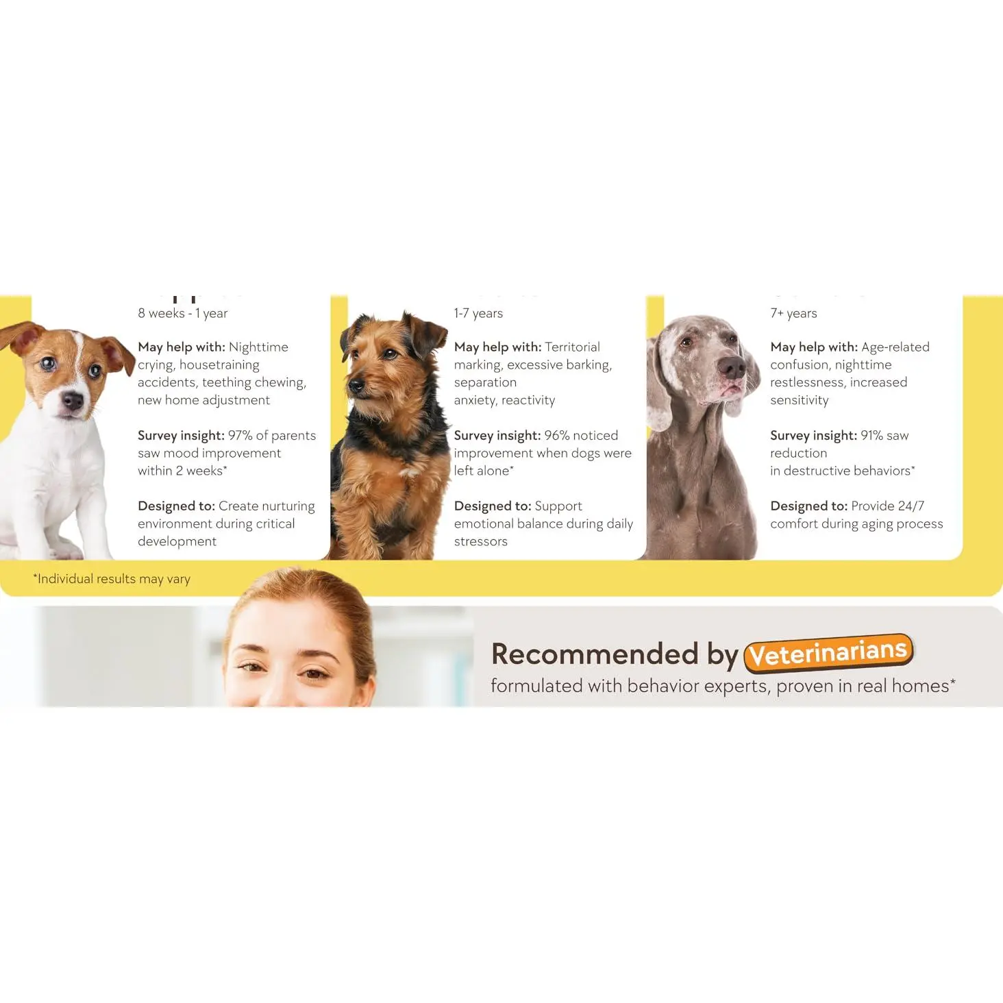 ·Long-Lasting 60-Day Refill - Designed to provide steady support for your dog’s daily comfort.The extended-use refill helps maintain a consistent calming environment while offering a cost-effective option compared to typical 30-day refills.