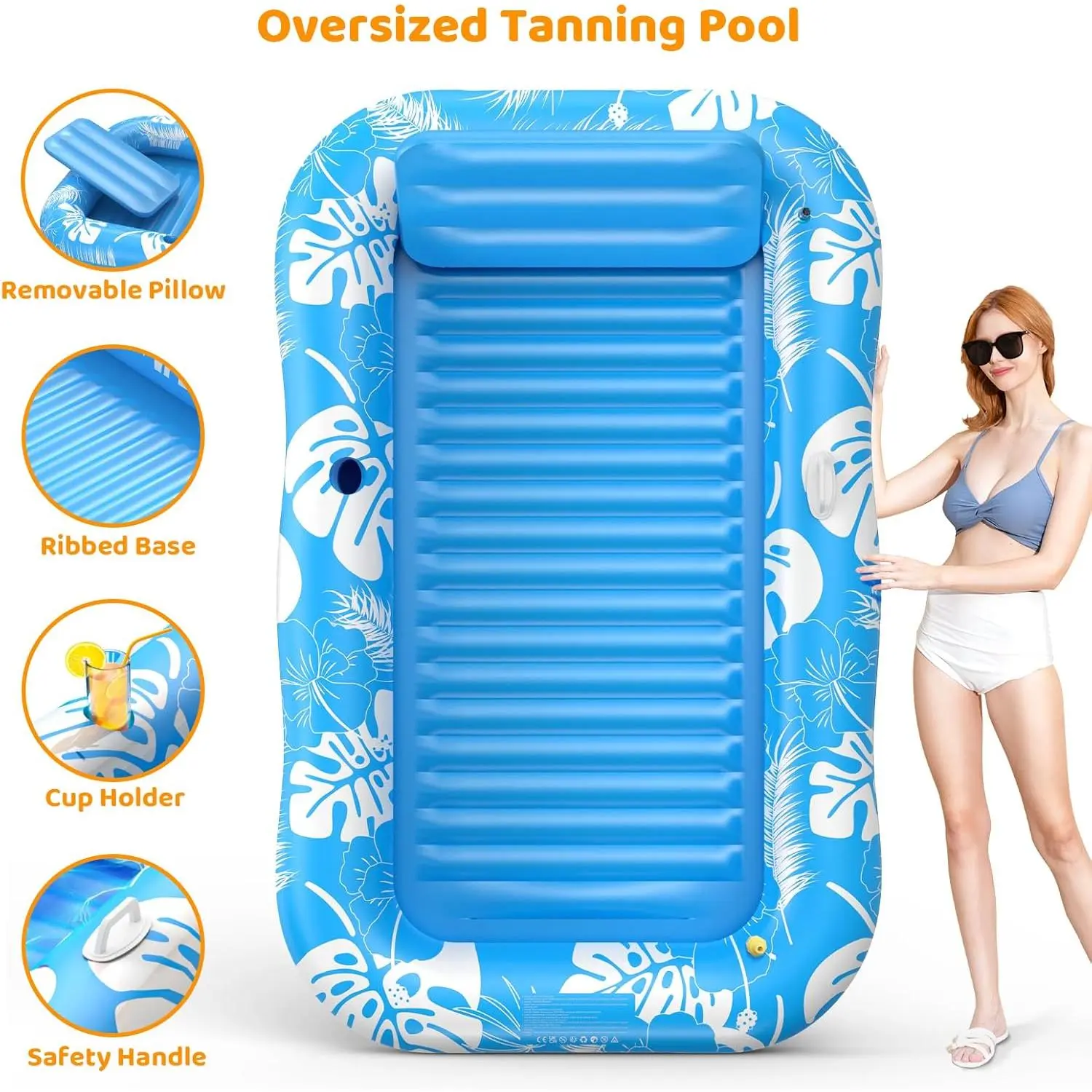 Inflatable Tanning Pool Lounger Float with Sprinkler, 77" x 48" Pool Floats Adult with Pillow, 6 in 1 Suntan Tub Raft Floatie with Drink Holder Sunbathing Water Lounge
