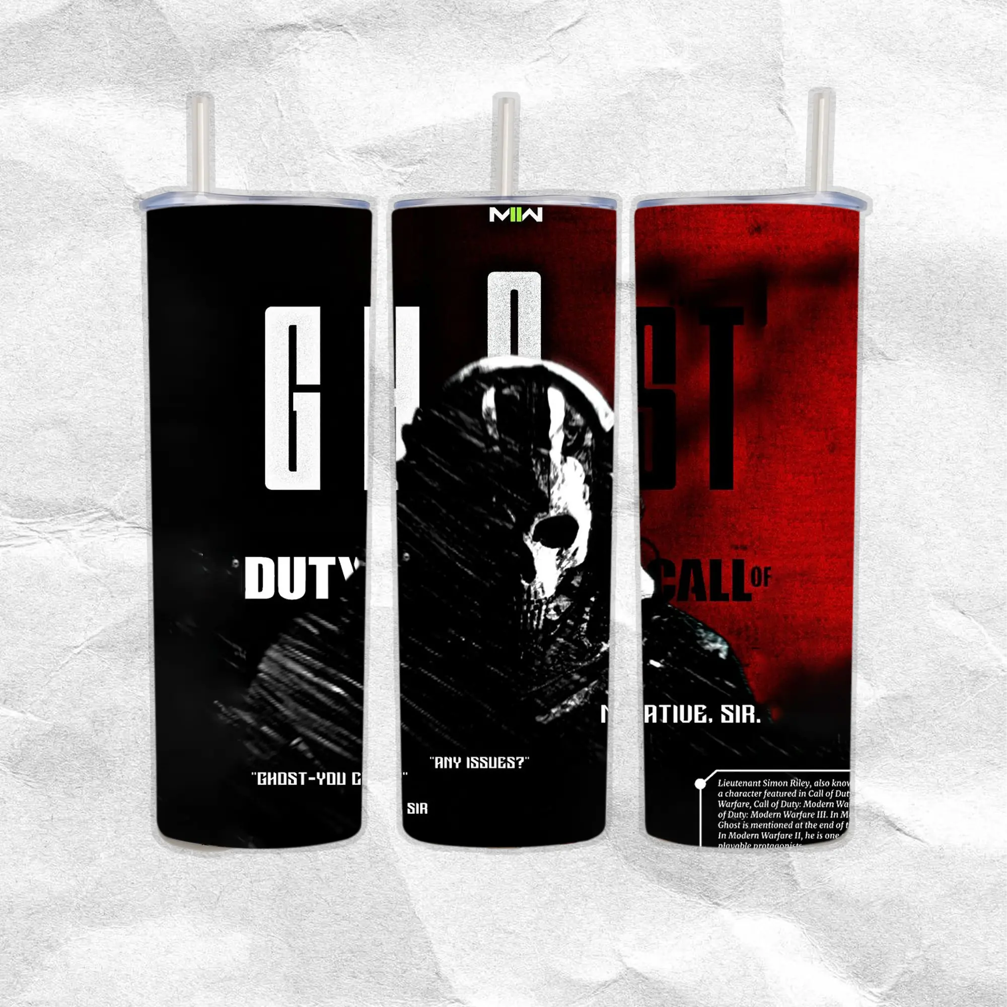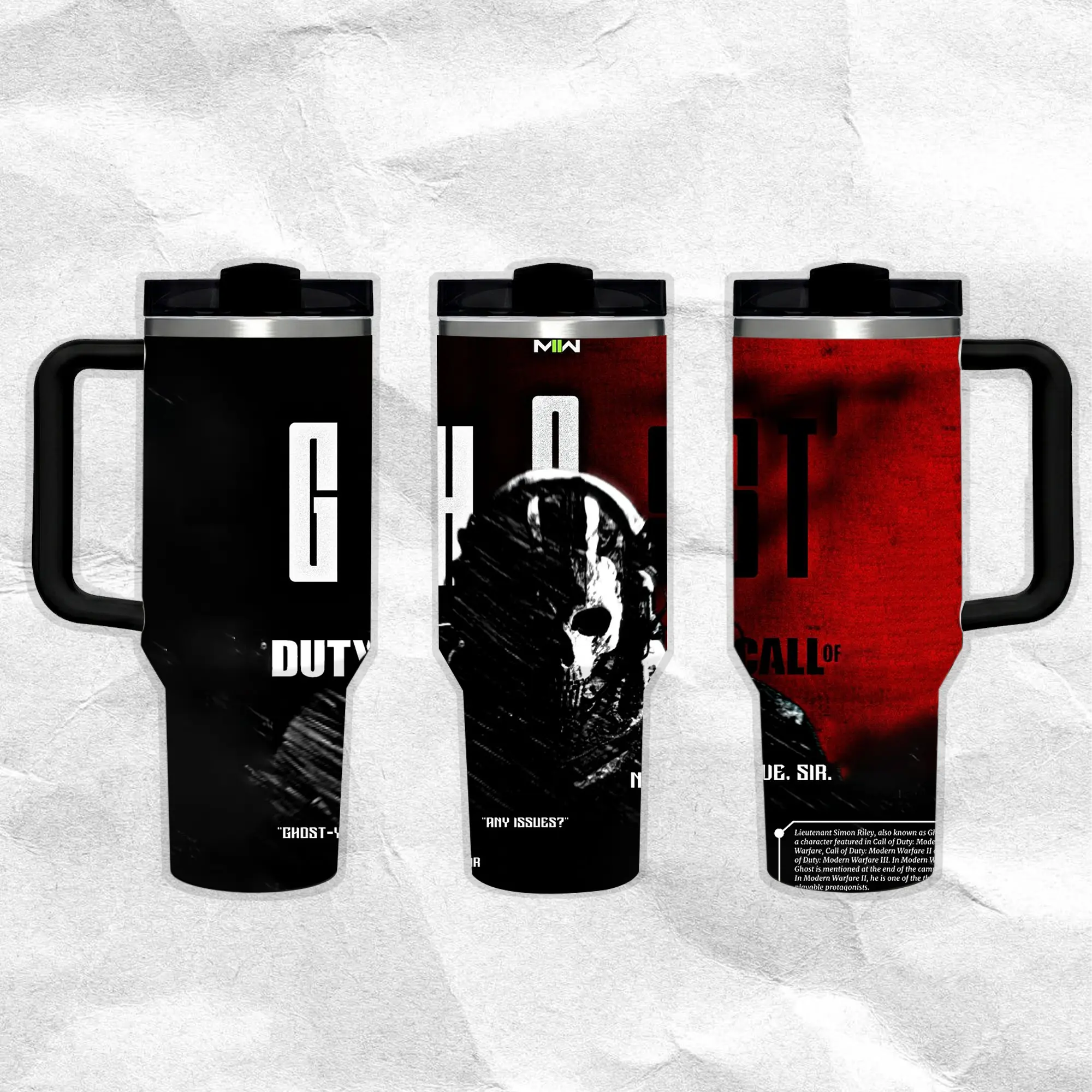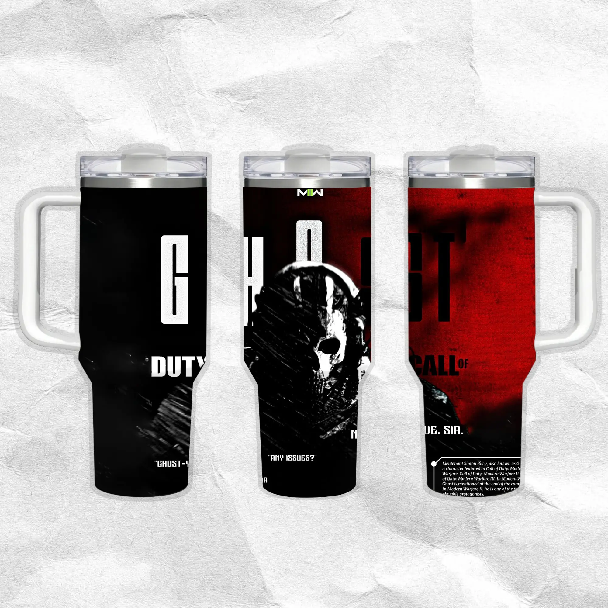 Simon "Ghost" Riley - Call Of Duty Water Bottle Stainless Steel Thermos Keeps Drinks Hot Cold 24H Portable Travel Mug Gothic Minimal Design Gift for Him Her