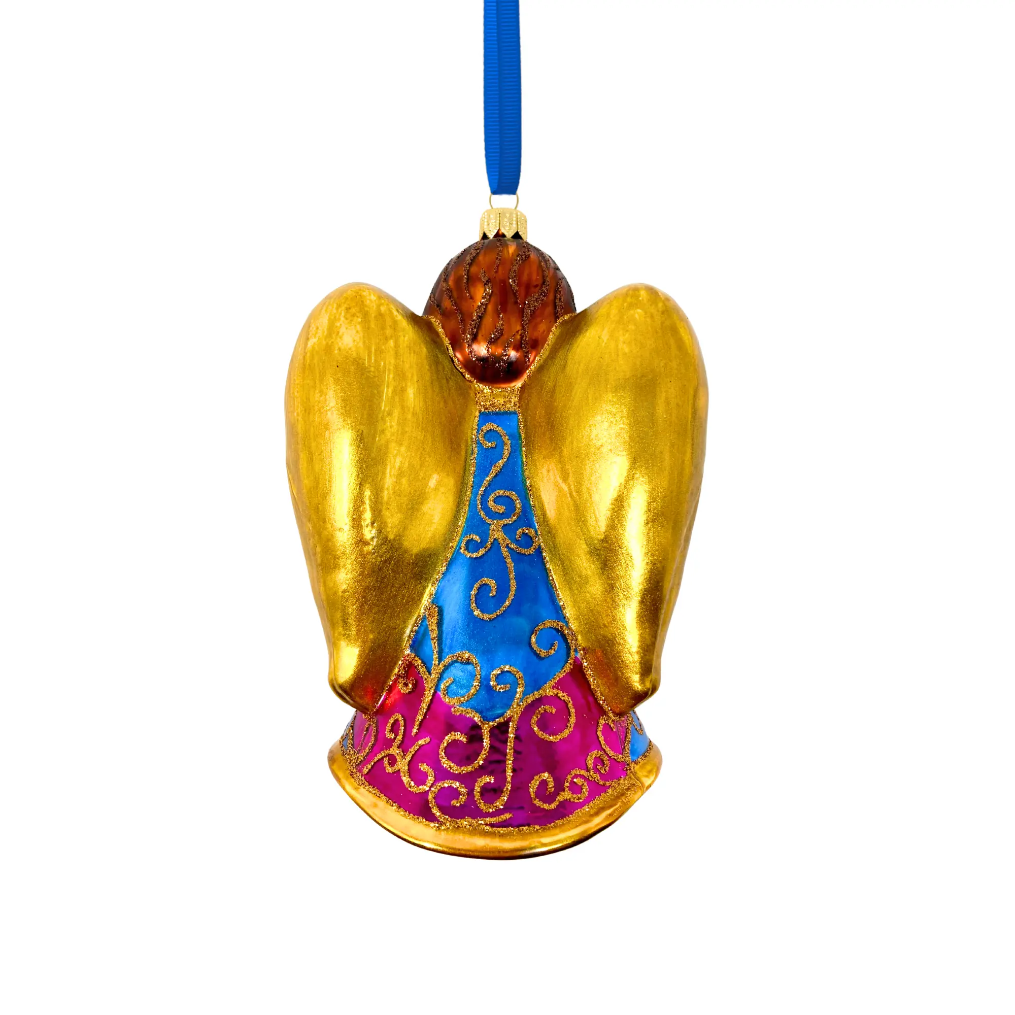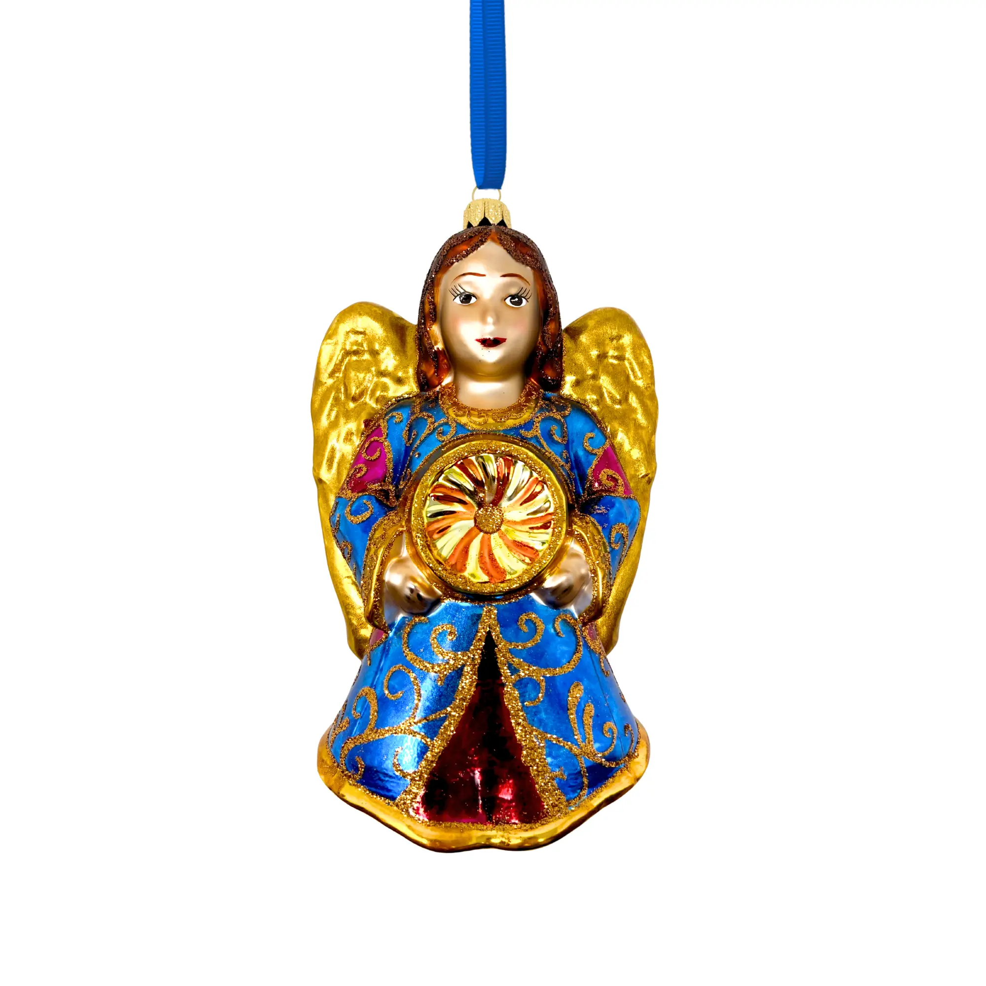 Draped in sapphire and gold, she holds a luminous reflector like a quiet promise. Delicate scrollwork shimmers across her gown while warm light gathers at her center, soft and composed. She doesn’t demand attention. She simply brings a sense of stillness that settles beautifully into the tree.