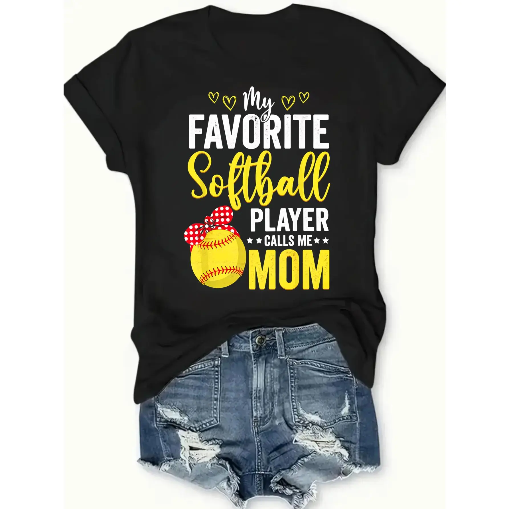 My Favorite Softball Player Calls Me Mom Black T-Shirt For Softball Moms Personalized Unisex Women's Top Summer Comfortable Breathable Short Sleeve Tee Suitable For All Outfits Made In Usa