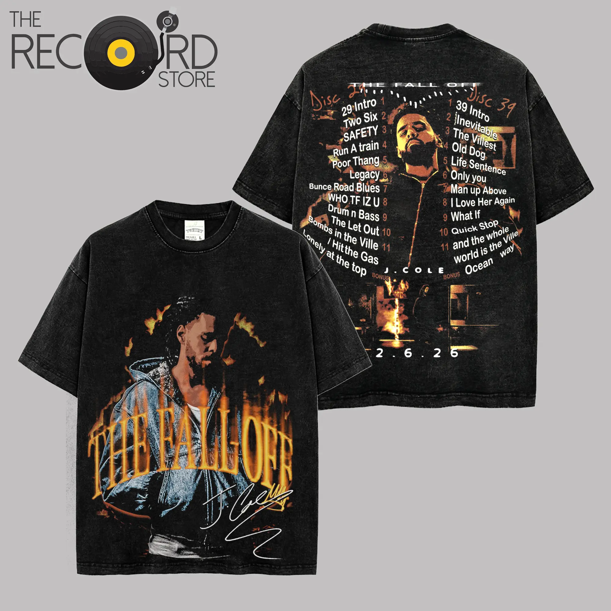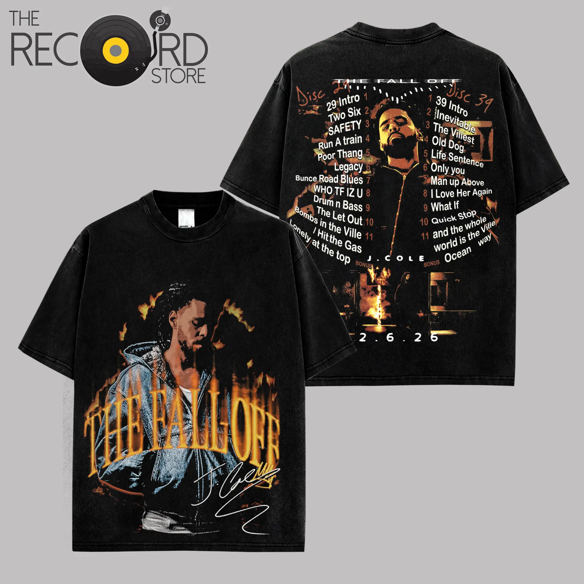 The Fall-Off Album Tracklist Graphic - J. Cole 2026 Official Premium Washed T-Shirt For Cold World, Disc 29, Disc 39 Hip-Hop Shirt, Gift For Jermaine Lamar Cole Fan Graphic Tee, Cole World Music Fan Merch Shirt