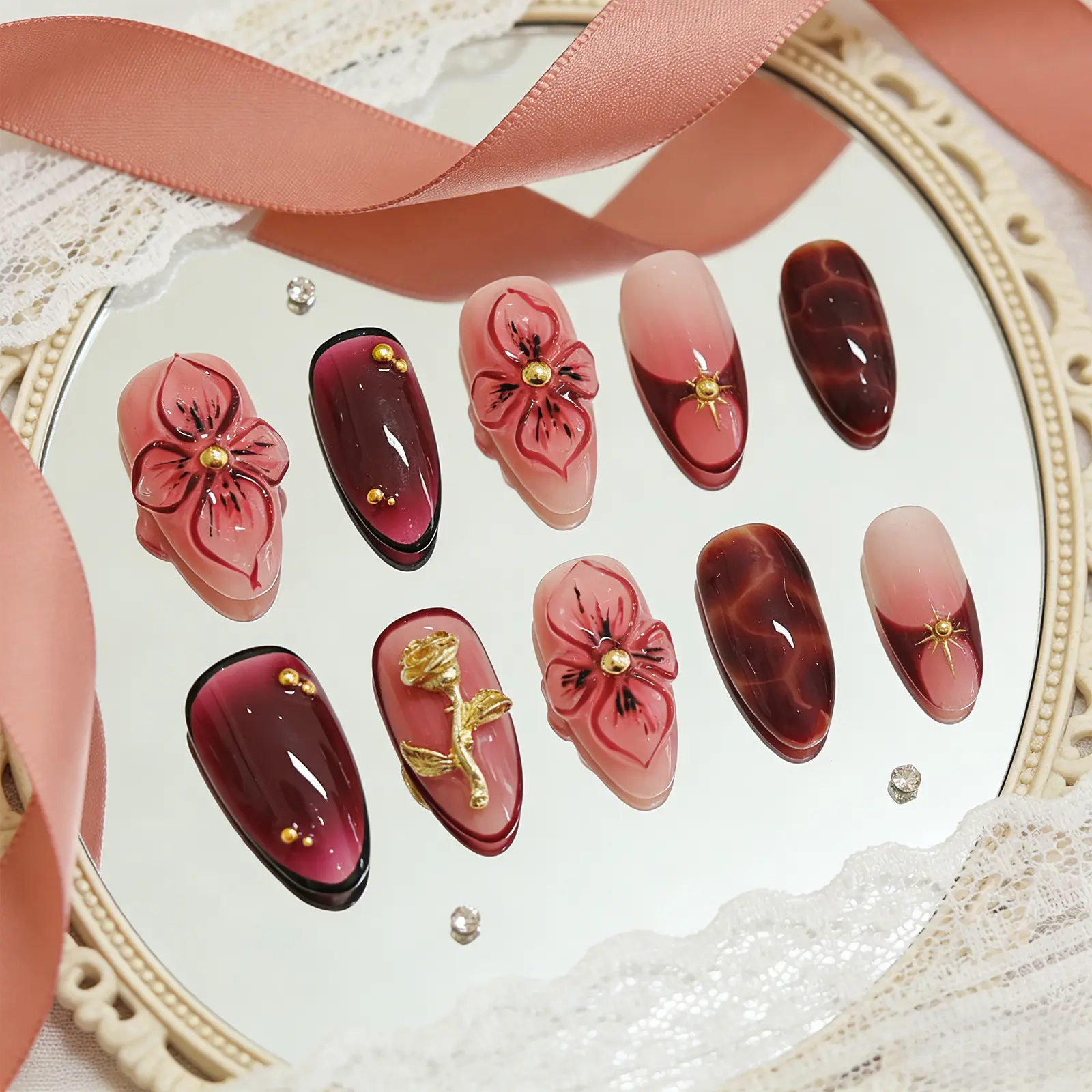 ·3D Handmade Flower & Amber Leopard: Adds a luxurious touch to your nails.