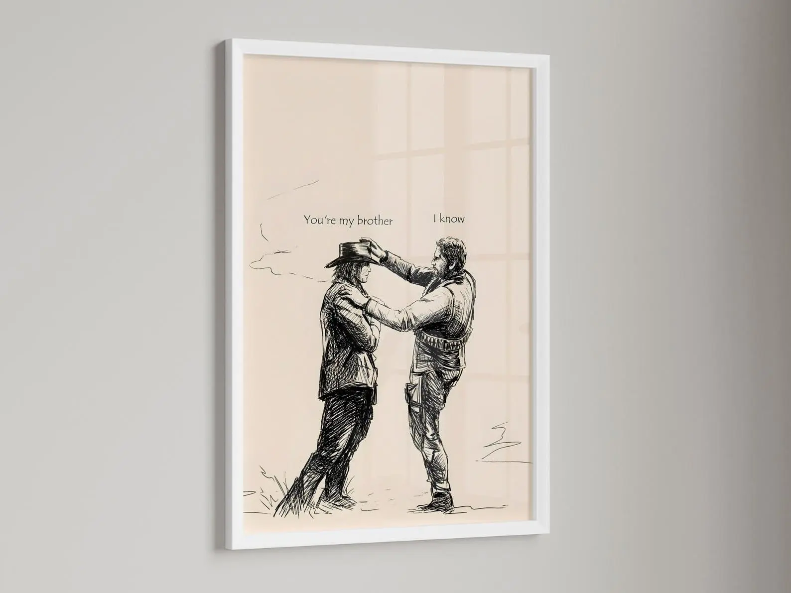 Arthur & John "You're My Brother" Poster – Red Dead Redemption 2 Sketch Wall Art, Emotional Western Outlaw Print for Gaming Rooms.