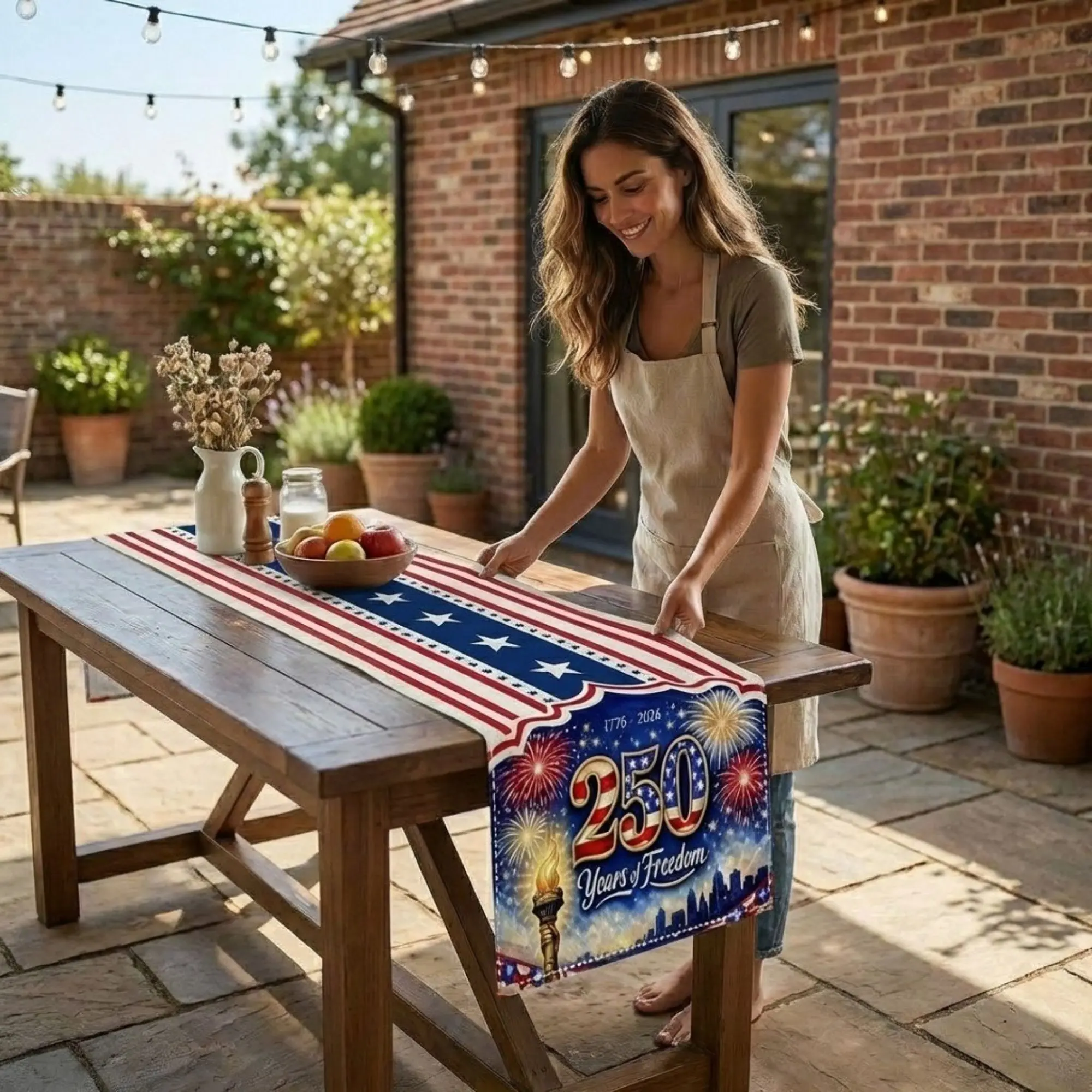 America 250 Years of Freedom Table Runner 1776–2026 – Patriotic USA Flag Stars Stripes, Independence Day Dining Decor