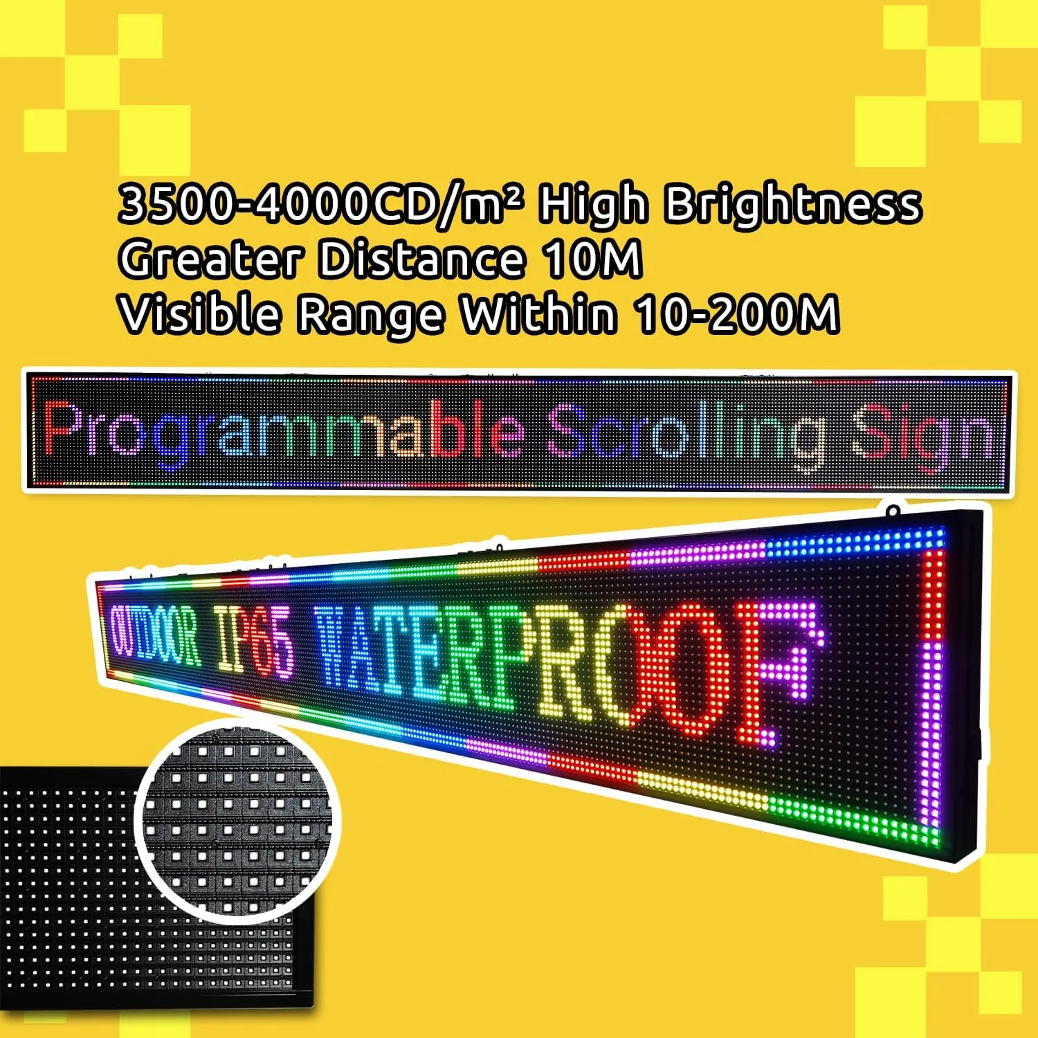 ·HIGH-BRIGHTNESS, LOW-POWER TECHNOLOGY: Our LED Sign Display with SMD technology, 4000 CD high brightness, wide viewing angle. Suitable for outdoor LED open signs for business advertising, remarkable daytime visibility, eye-catching at night, optimal visibility range of 10-200 meters. Low power consumption ensures long-term stable operation, helping you save energy costs.