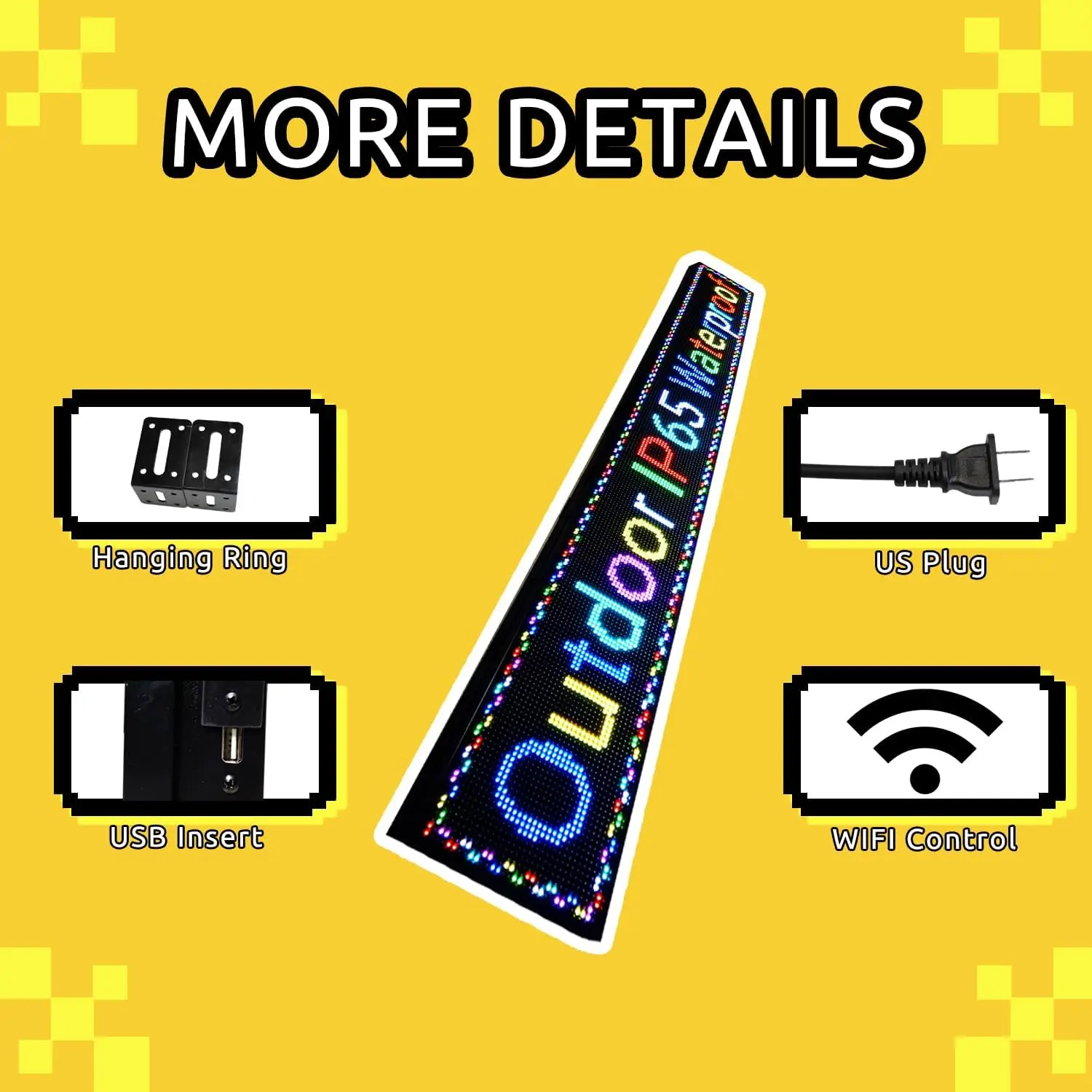 ·CONTENT UPDATE-WIFI/USB: Our LED Signs Display digital signage displays built-in wireless WiFi allows you to change the advertisement content by connecting to the app via WiFi. Simply use the software to program messages (PC, iOS, Android). You can send the content to a USB flash drive and then insert it into the display to play.