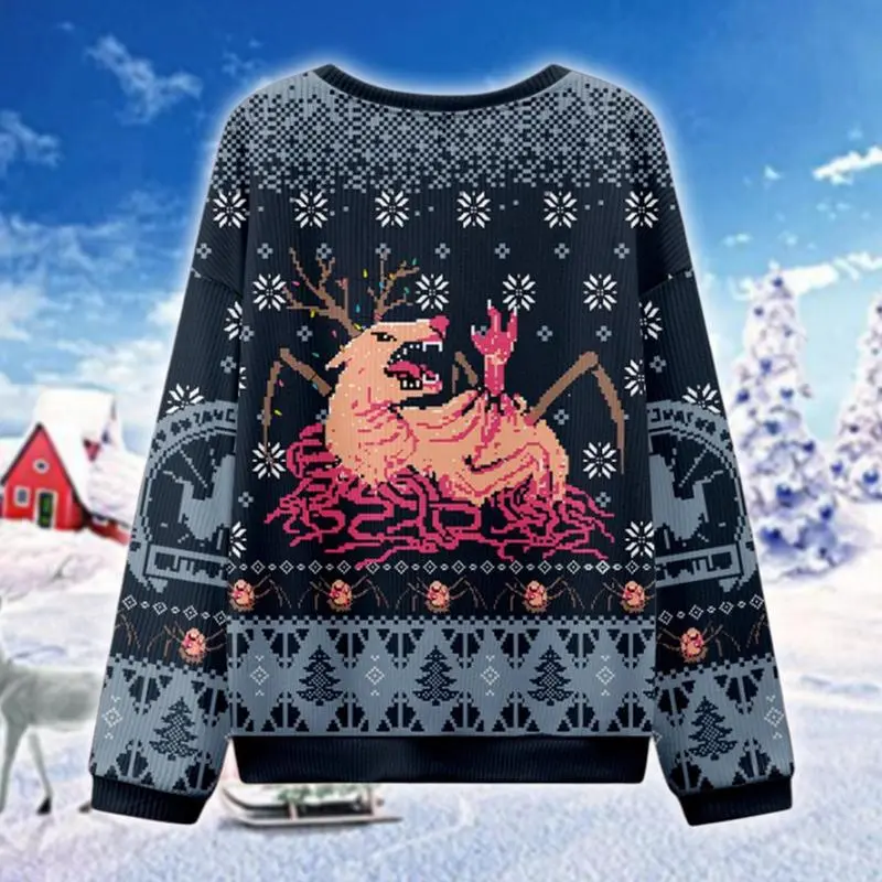 Cursed Reindeer Ugly Christmas Sweater, Creepy Deer Monster Knit Jumper, Horror Xmas Sweatshirt, Weird Holiday Gift for Him Her