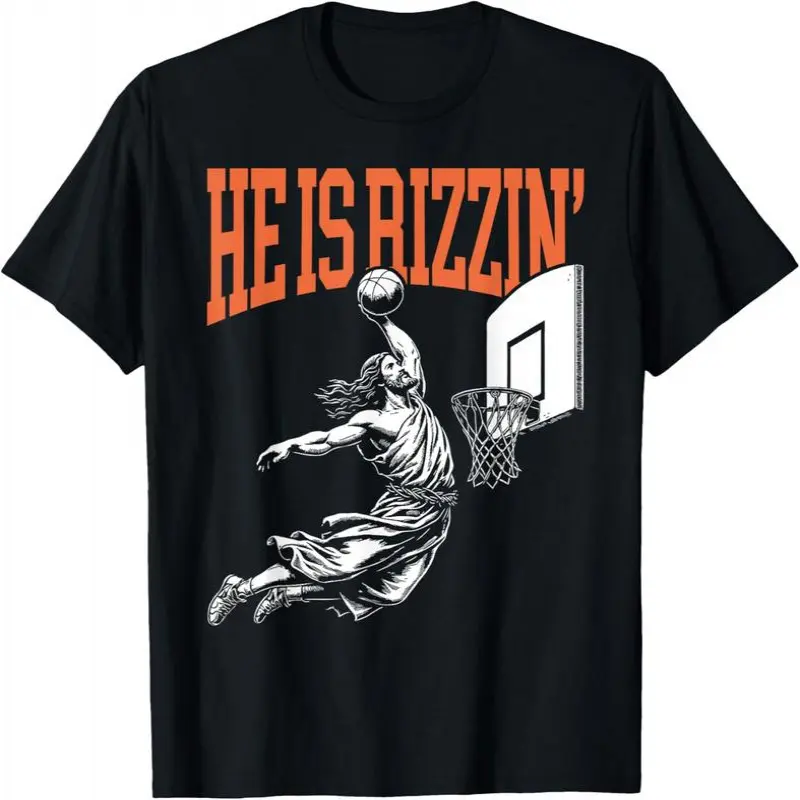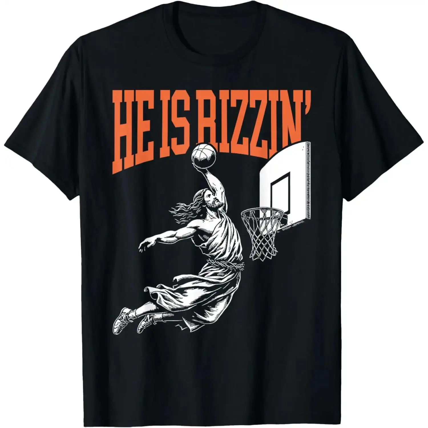 Casual Cotton shortsleeve funny graphic tees He Is Rizzin Funny Jesus Basketball Meme men T-Shirt Fabric Menswear 0714D 818