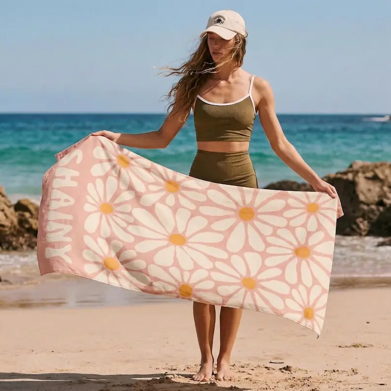 5. Personalized Daisy Beach Towel 70s Boho Custom Name Gift v5