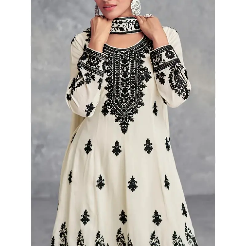 5. Women's Casual Elegant Floral Print Round Long Sleeve Top and Pants Set BK 123002 Clothes