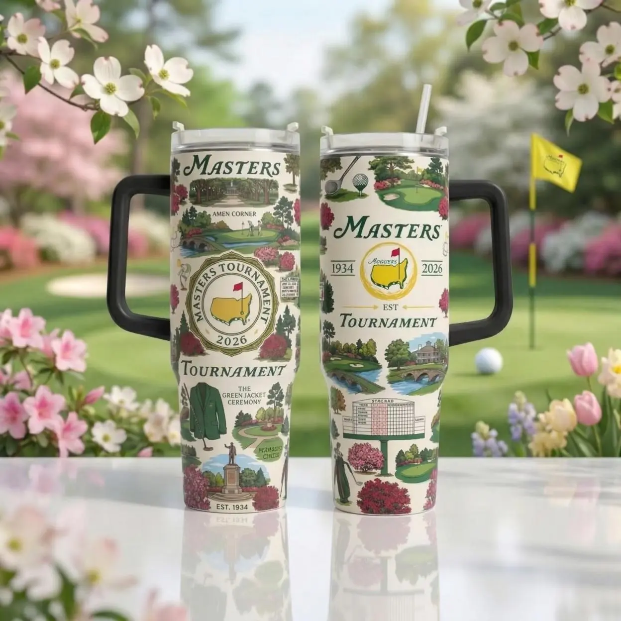 Masters Golf Tumbler 40oz Handle, 2026 Augusta Inspired Champion Mug, Golf Lover Gift, Insulated Travel Cup