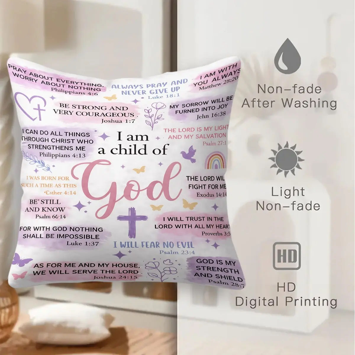I Am A Child Of God Throw Pillow, Christian Bible Verse Cushion, Religious Accent Pillow (Includes Pillow Core), Inspirational Decor for Bedroom, Sofa & Church,Gift for Mother, Sister, Daughter