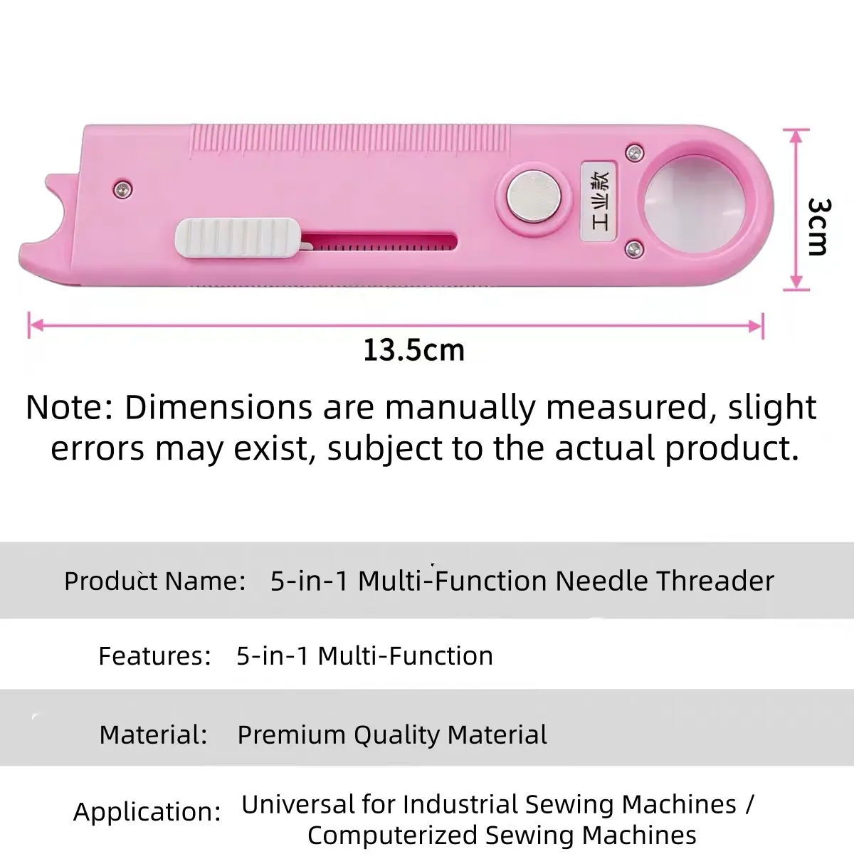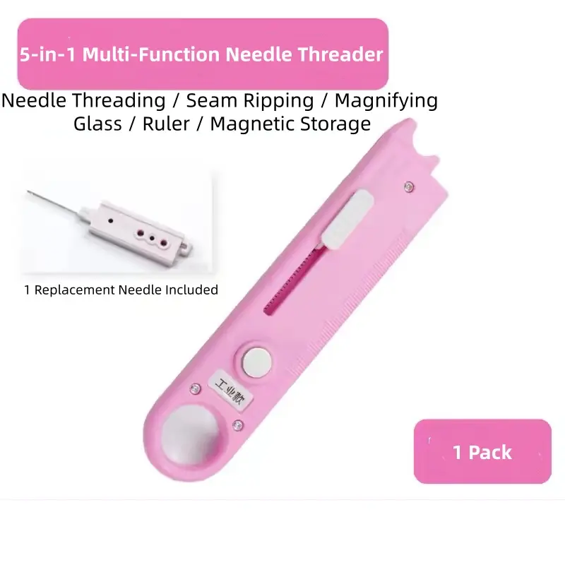 5-in-1 Sewing Needle Threader with Seam Ripper, Magnifying Glass, Ruler & Magnetic Storage - Industrial & Domestic Sewing Machine Accessory