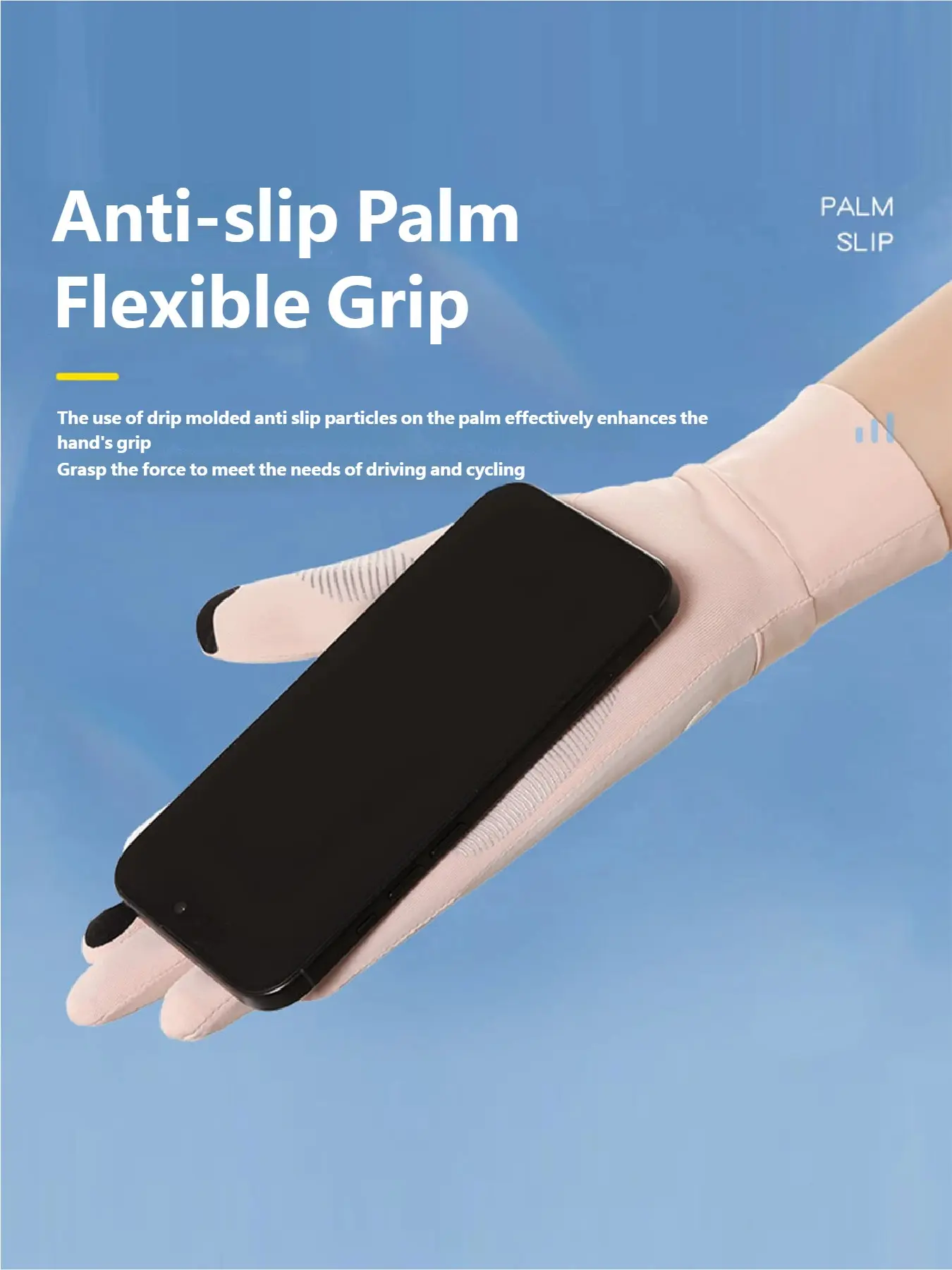 Ice Silk Thin Anti-Slip Breathable Cool Touch Screen Driving Cycling Gloves, UV Protection Summer Sunscreen Gloves for Women