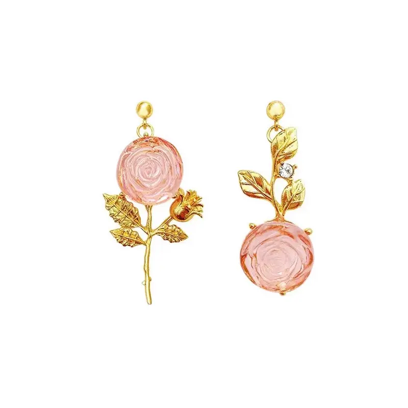 Asymmetric Flower Earrings, 2023 New Arrival Niche Design High-End Dangle Earrings, Rose Stud Earrings for Women