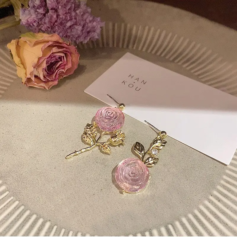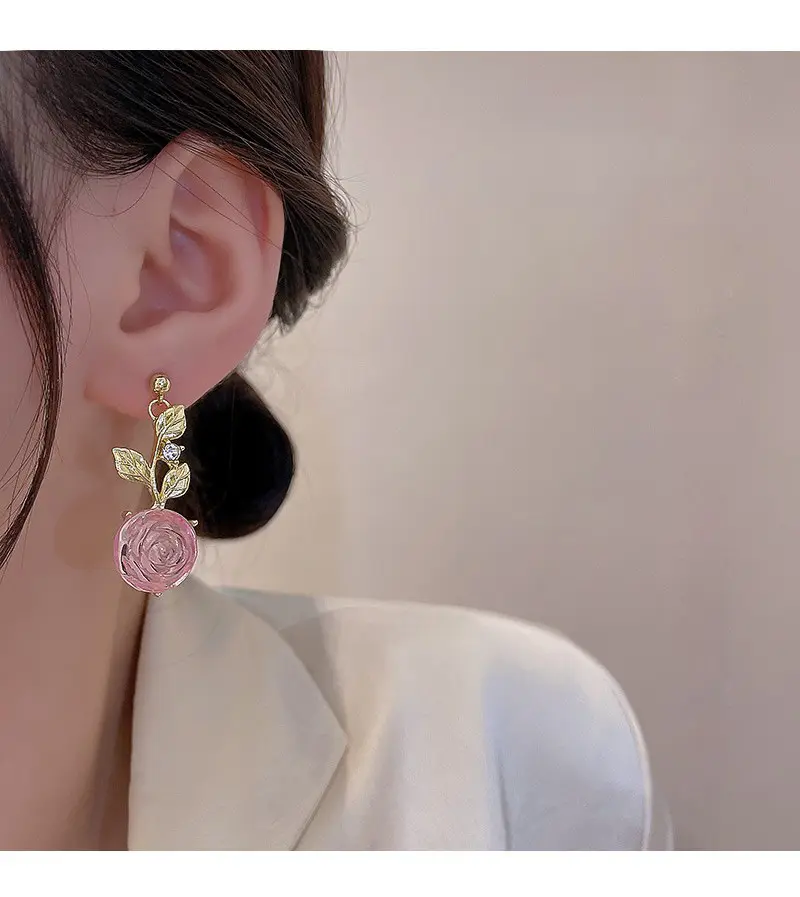 ✨ Discover the 2023 New Arrival Niche Design High-End Dangle Earrings. These earrings feature an asymmetric flower design, perfect for women who love unique jewelry. The rose stud adds a touch of elegance, making it a standout piece. Ideal for those seeking a distinctive accessory.