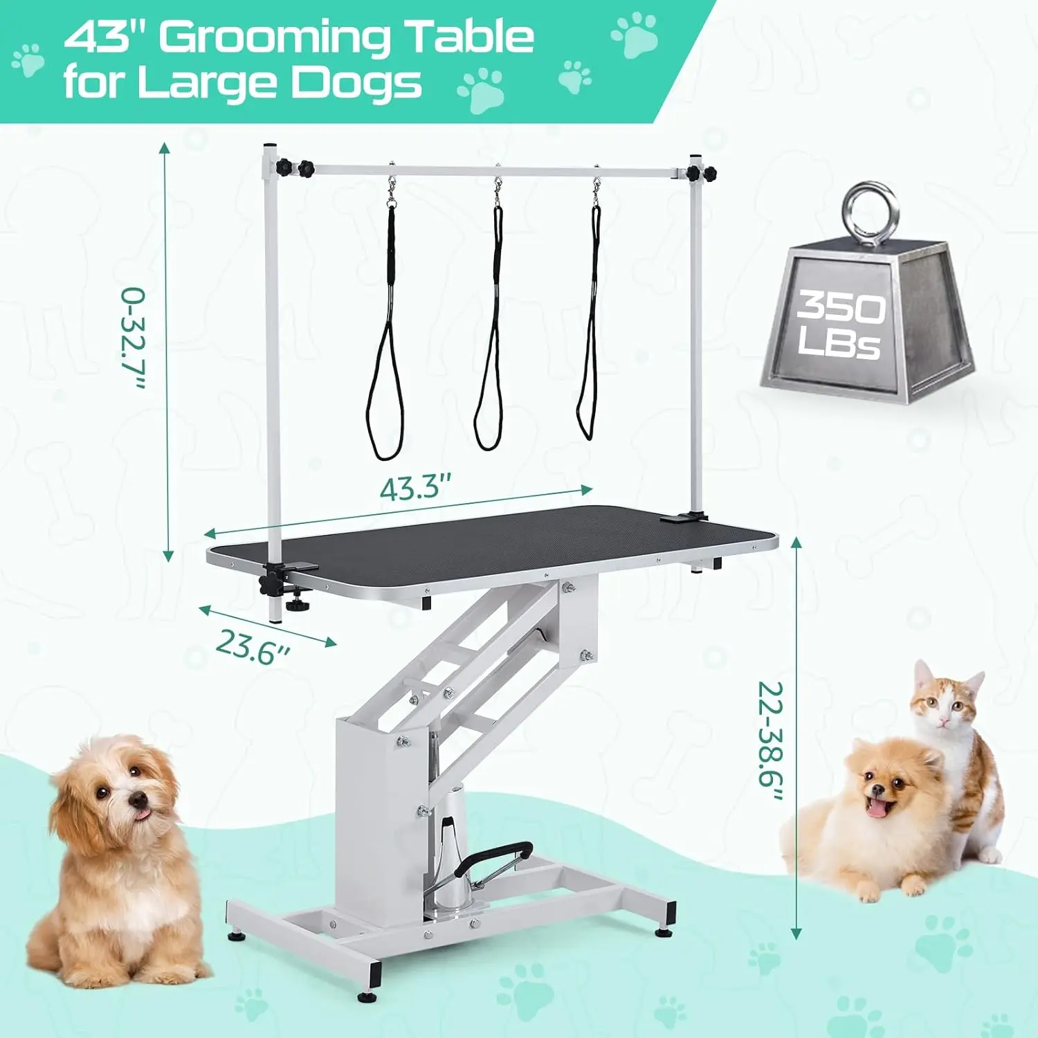 • 【Home Dog Grooming Station】This product includes various accessories to meet your pet's restraint needs. Accessories include: iron spray gantry, clamps*2, ropes*3, hydraulic pump, and footrest*1.