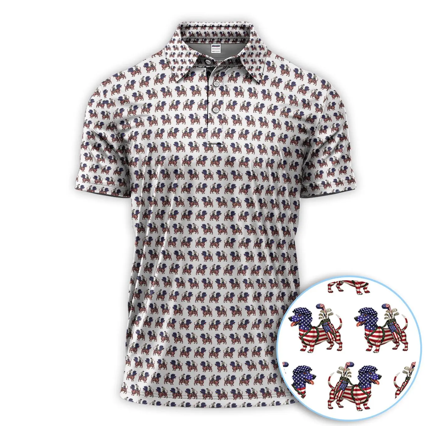 5. Patriotic Dachshund Golf Polo, USA Flag Wiener Dog Pattern Golf Shirt, Crazy Golf Gift For Golfer
