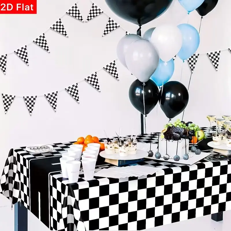 【Racing Theme】: Features a bold black-and-white checkered racing pattern, perfect for themed parties and events.