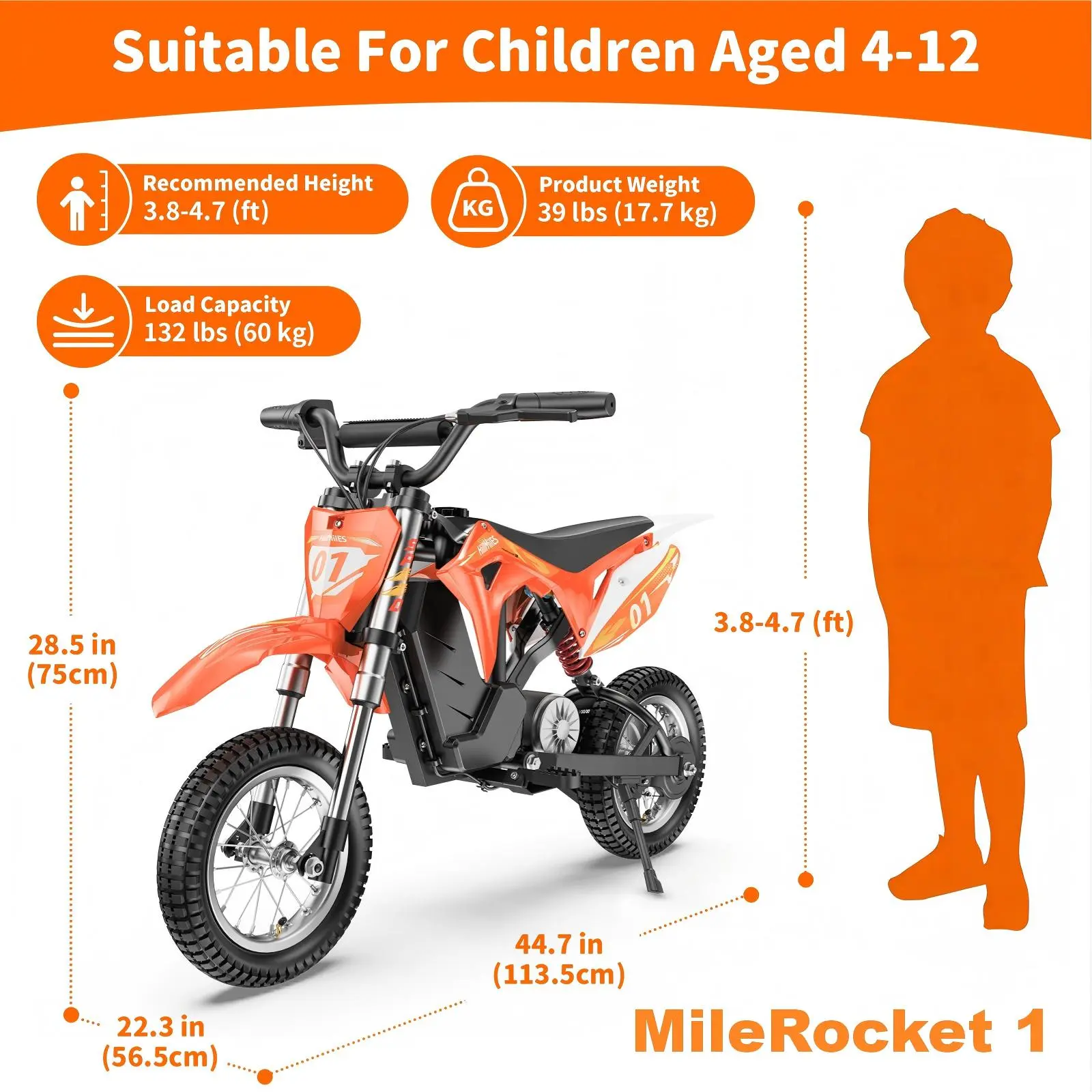 Powered by a 36V 4Ah rechargeable battery, the bike provides up to 9.3 miles of range per charge, making it perfect for backyard fun, park riding, and outdoor adventures without frequent recharging.