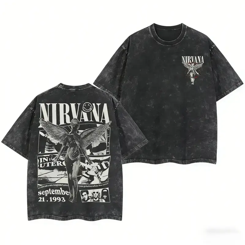 ✨Unisex Design: This Nirvana tour T-shirt is suitable for both men and women.It features a double-sided print design, making it a standout item for any rock fan.The washed cotton fabric ensures comfortable wear🌟