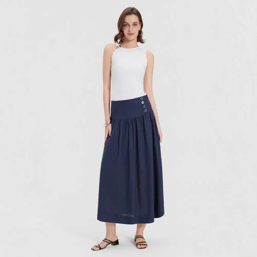 Add a modern piece to your wardrobe with the Women's Mid-Rise Side Button Placket Skirt from A New Day. Made from lightweight woven fabric, this midi skirt offers breathable comfort with a smooth, flattering drape. The mid-rise waist and slim-fit silhouette create a sleek shape, while the side button placket adds subtle visual interest. Designed with a side zipper for a secure fit, this versatile skirt pairs effortlessly with blouses, sweaters or fitted tops for polished everyday or work-ready styling.