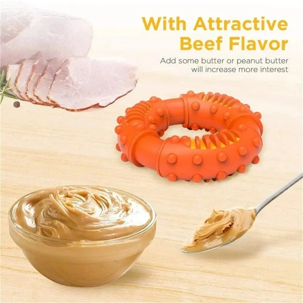 Dog Chew Toys for Aggressive Chewers, Dental Ring Toy for Teeth Cleaning, Interactive Teething Chew Toy with Treat Slots for Puppies, Small Medium Dogs