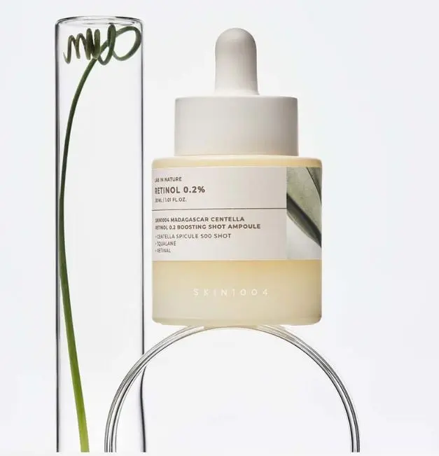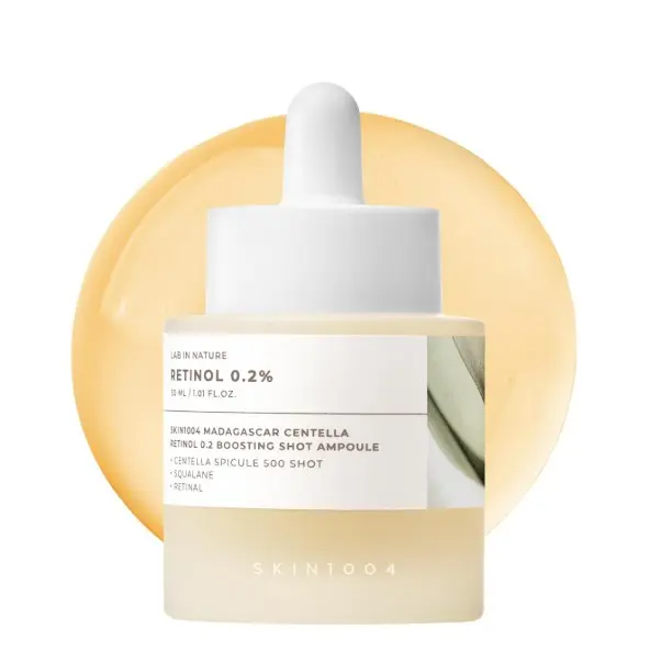 The SKIN1004 Madagascar Centella Retinol 0.2 Boosting Shot Ampoule is a clinically proven firming solution that improves elasticity, smooths texture, and strengthens the skin barrier. Featuring 0.2% Retinol and Retinal in a soothing base of Madagascar Centella and Panthenol, this ampoule delivers targeted anti-aging benefits without harsh irritation. Powered by micro-sized hydrolyzed sponge spicules, the Boosting Shot system creates micro-pathways to enhance ingredient absorption by up to 132.8% compared to standard formulas, allowing actives to get absorbed deeper for faster, more visible results.