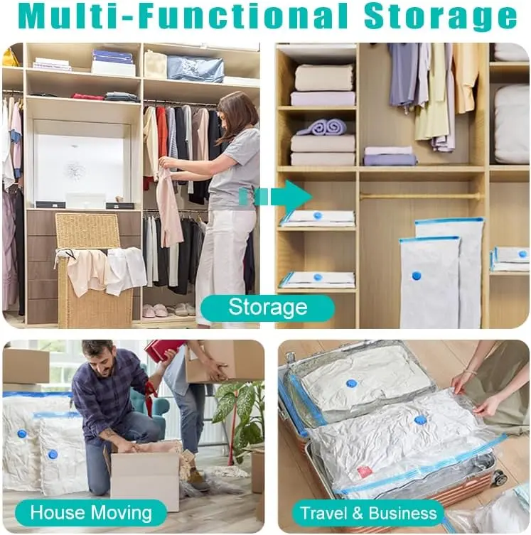 ·Durable, reusable space-saver bags are made with thick layers of PA and PE films, which improve tear and wear resistance.