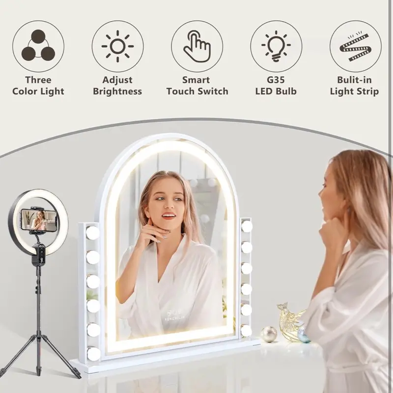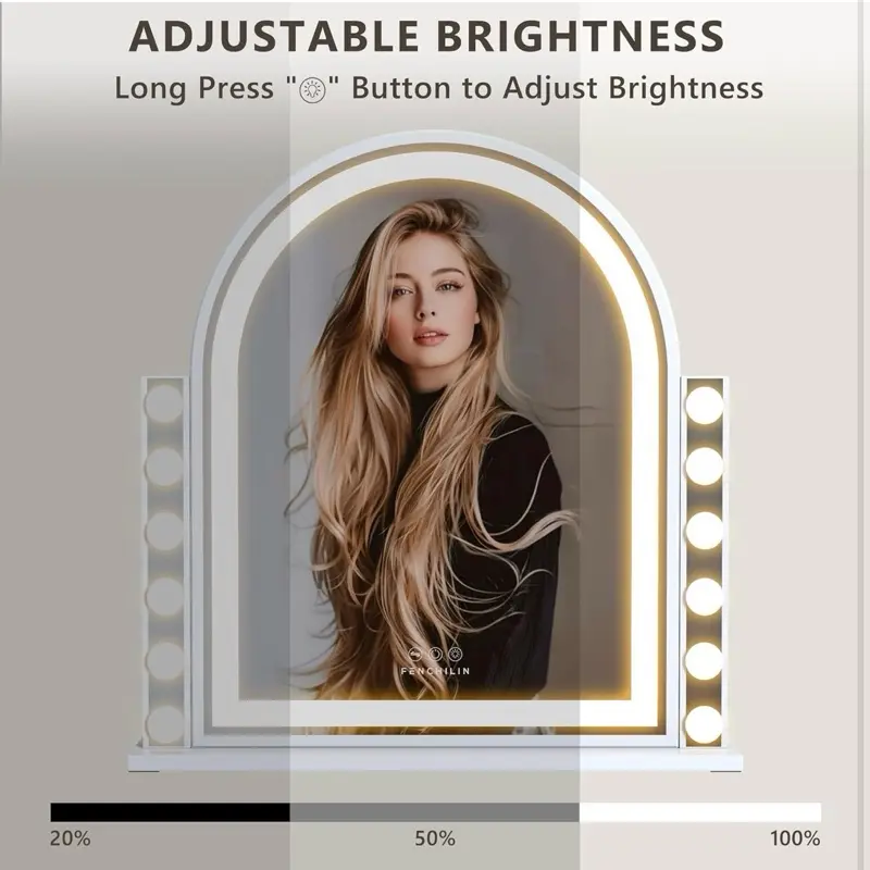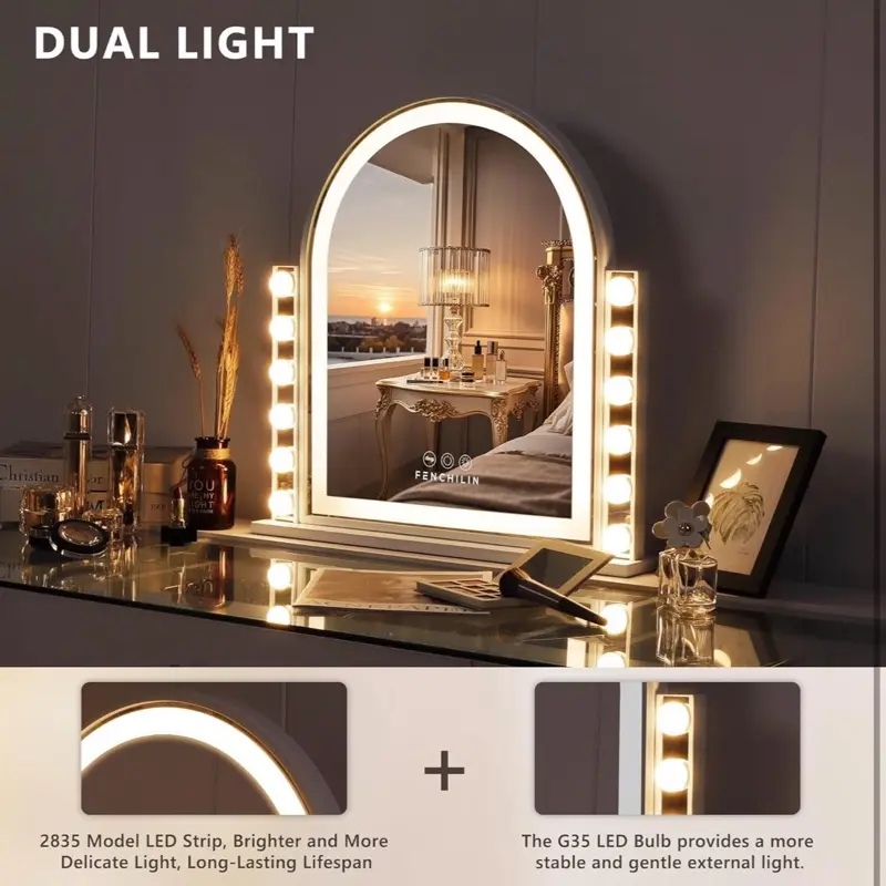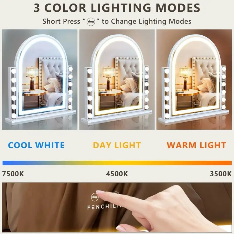 ·Arch Design Aluminum Vanity Mirror: This FENCHILIN makeup mirror with light designed an arched aluminum frame that provides comfort to the touch and soft visual aesthetics. The metal frame not only enhances the sturdiness of the Light up mirror, but also extends the life of the product.