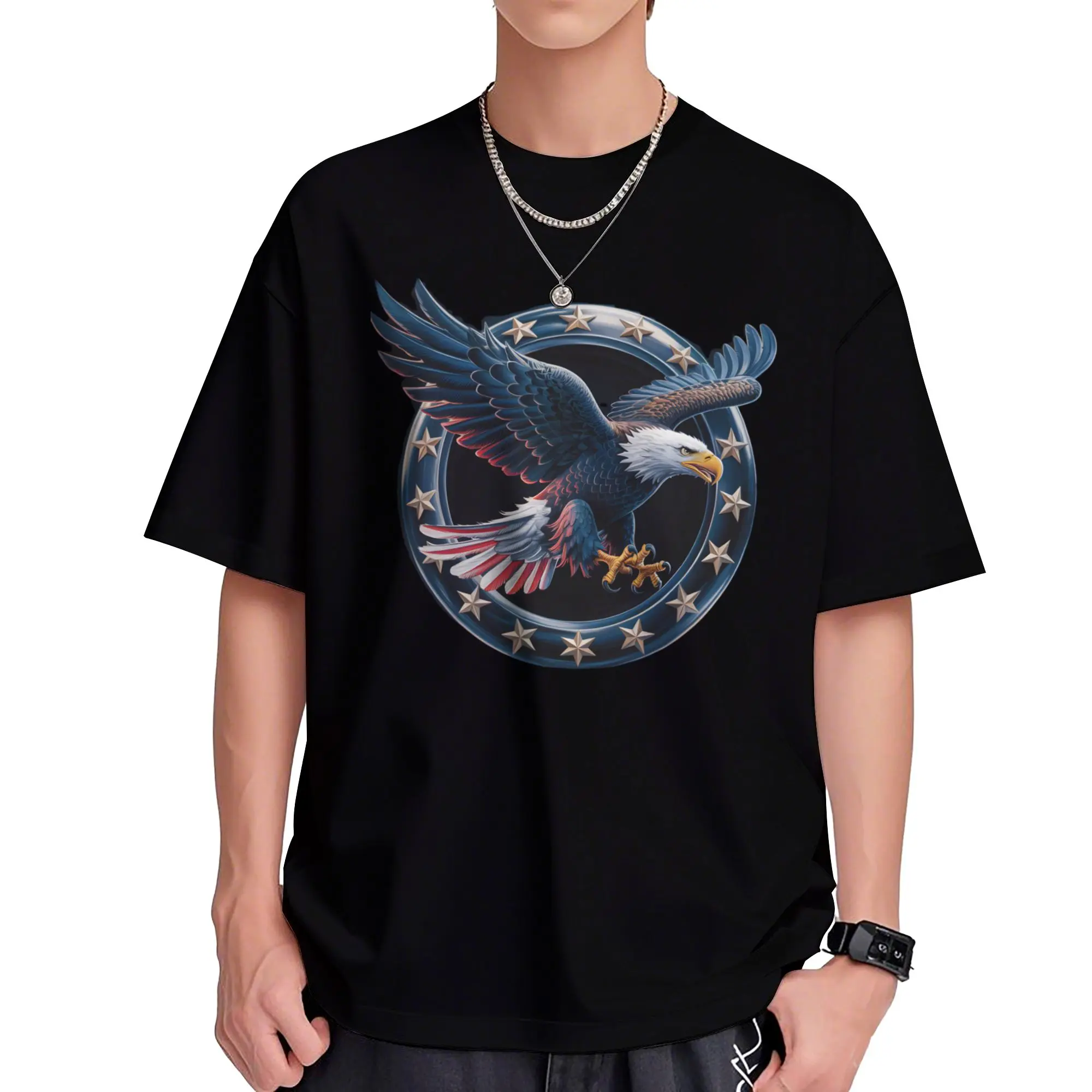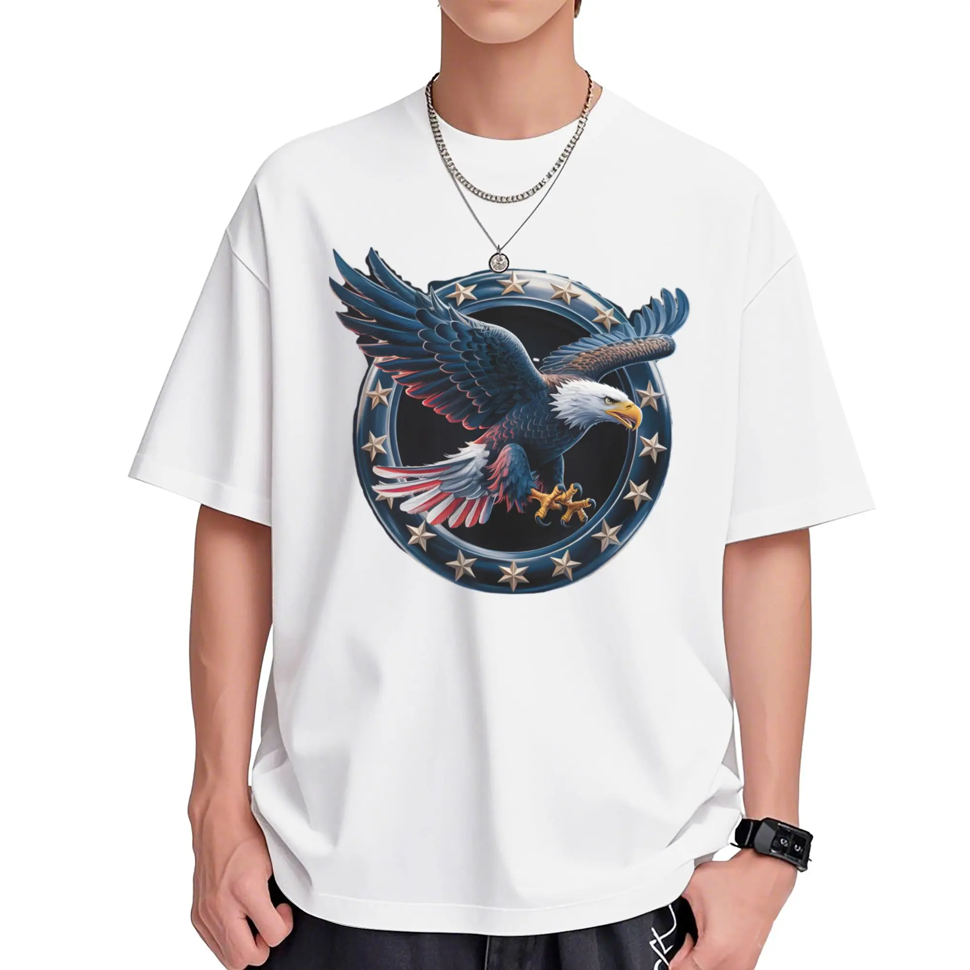 ·Design: Silver Shield Tee with American Eagle US Flag.
