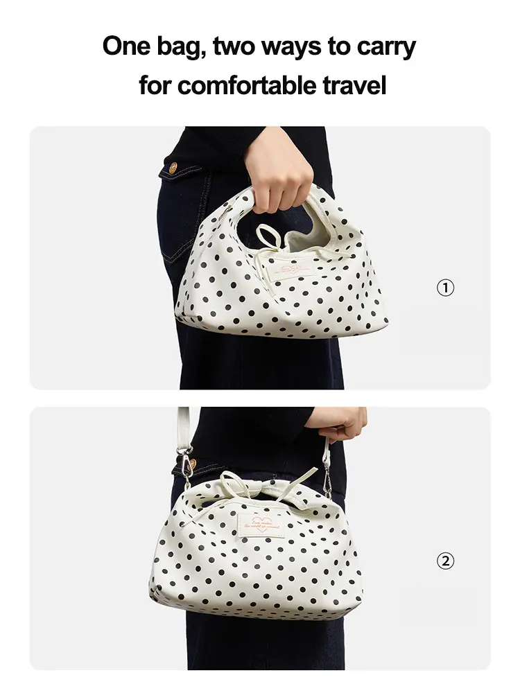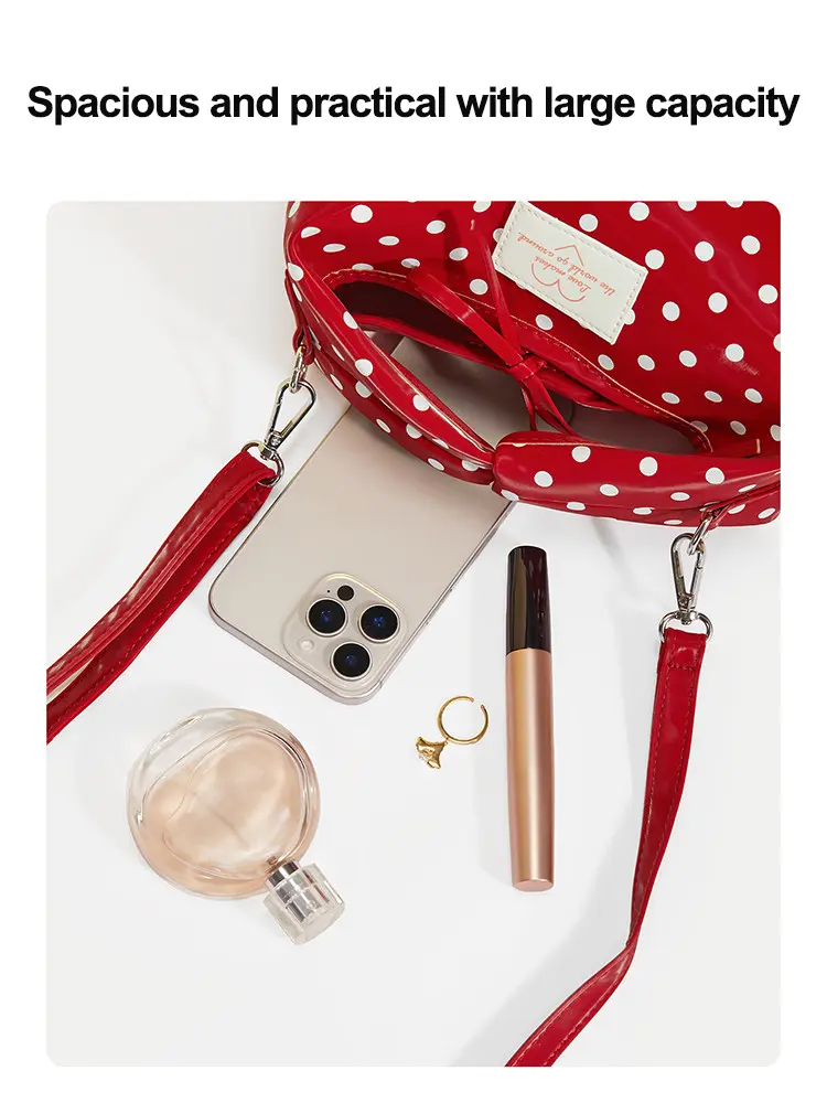 ✨ This MINISO Polka Dot Lucky Tote Bag is a trendy handbag and crossbody bag. Its all-match design makes it perfect for any occasion. The lucky element adds a touch of charm. Ideal for daily commute, shopping, and travel. This bag is lightweight and portable, making it a casual shoulder bag for women.