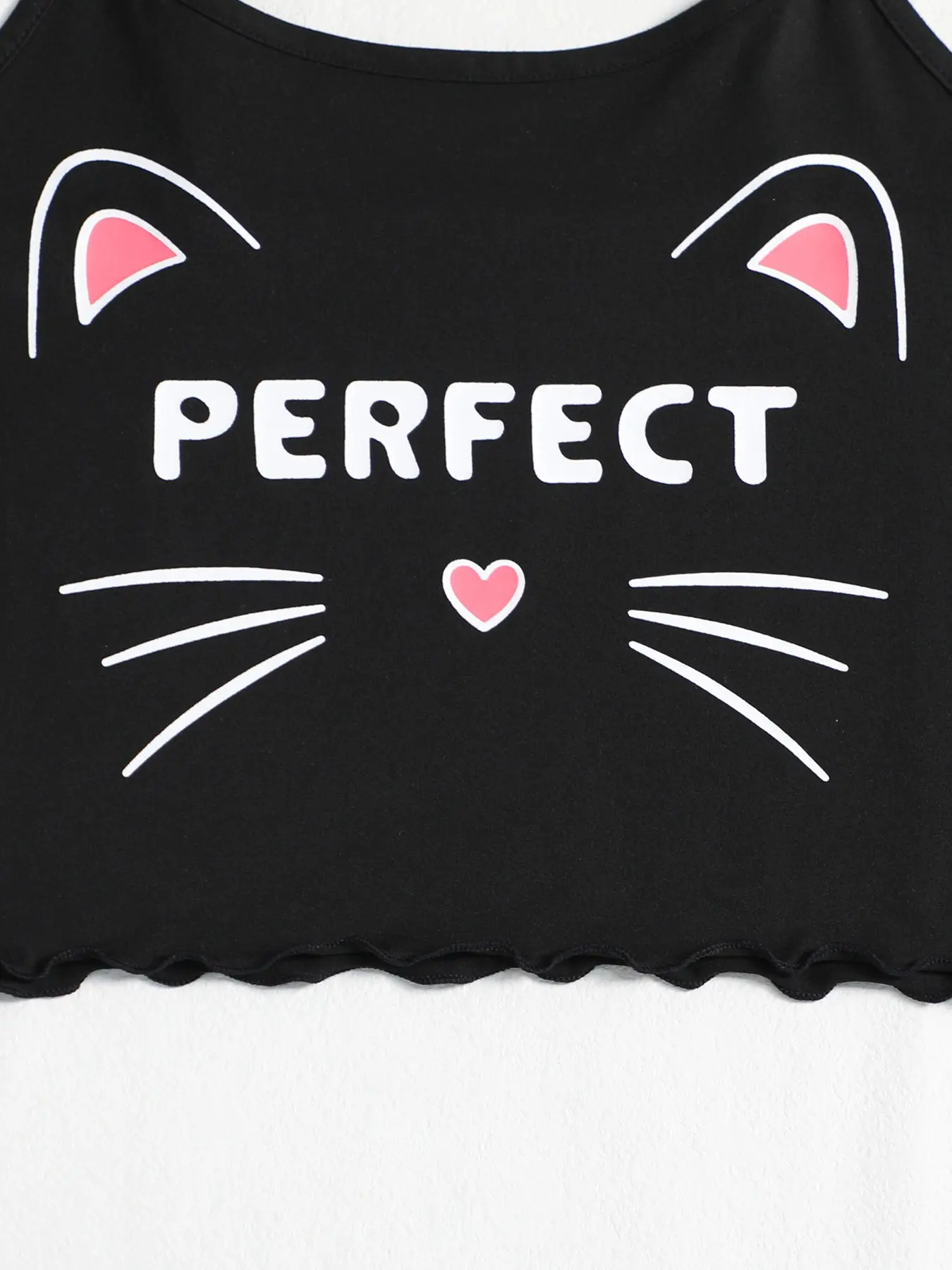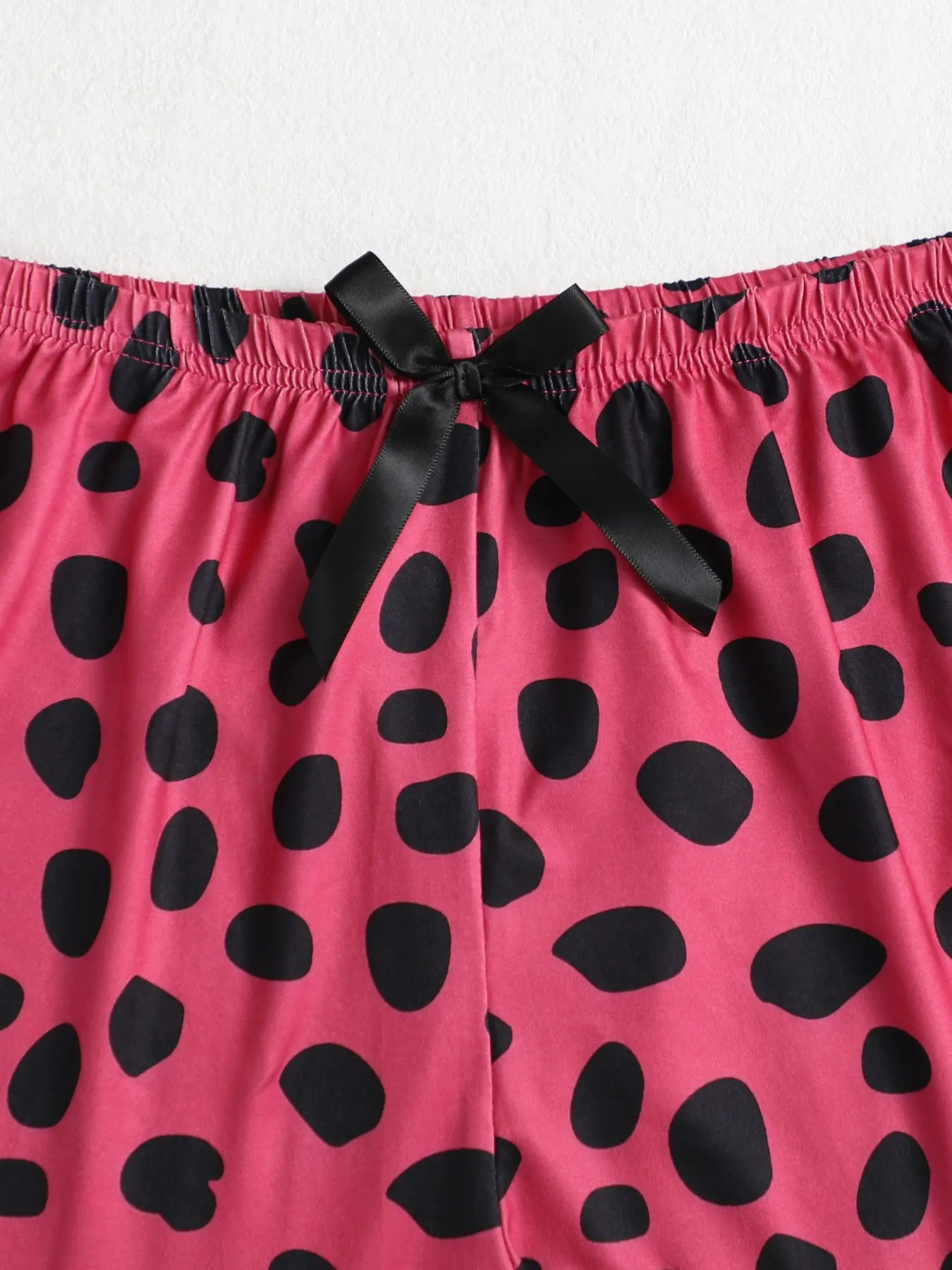 Women's Summer Sleepwear Set, Sexy Halter Top, Cartoon Letter Print, Polka Dot Bow Decor, Comfortable Lounge Wear, Casual Home
